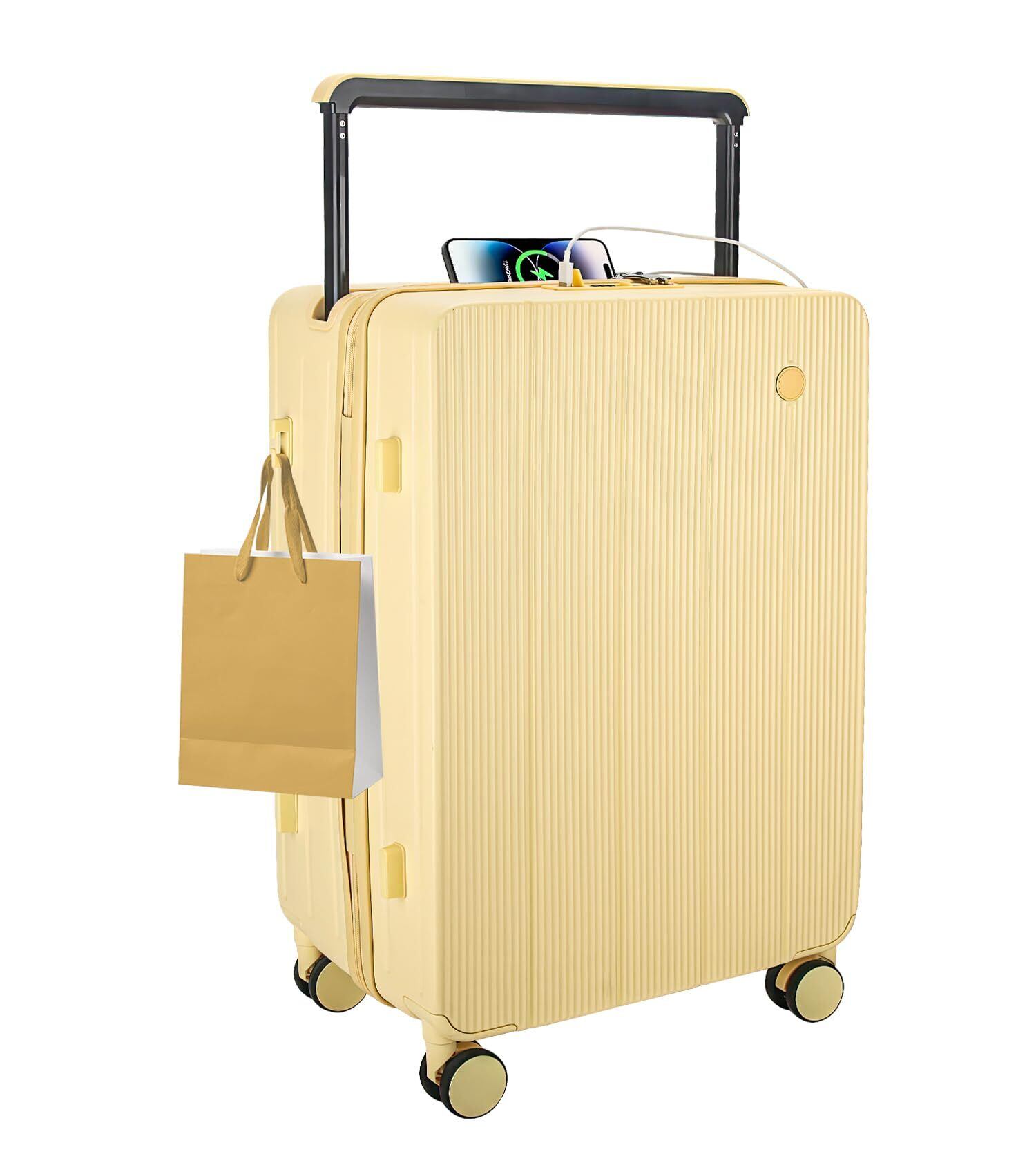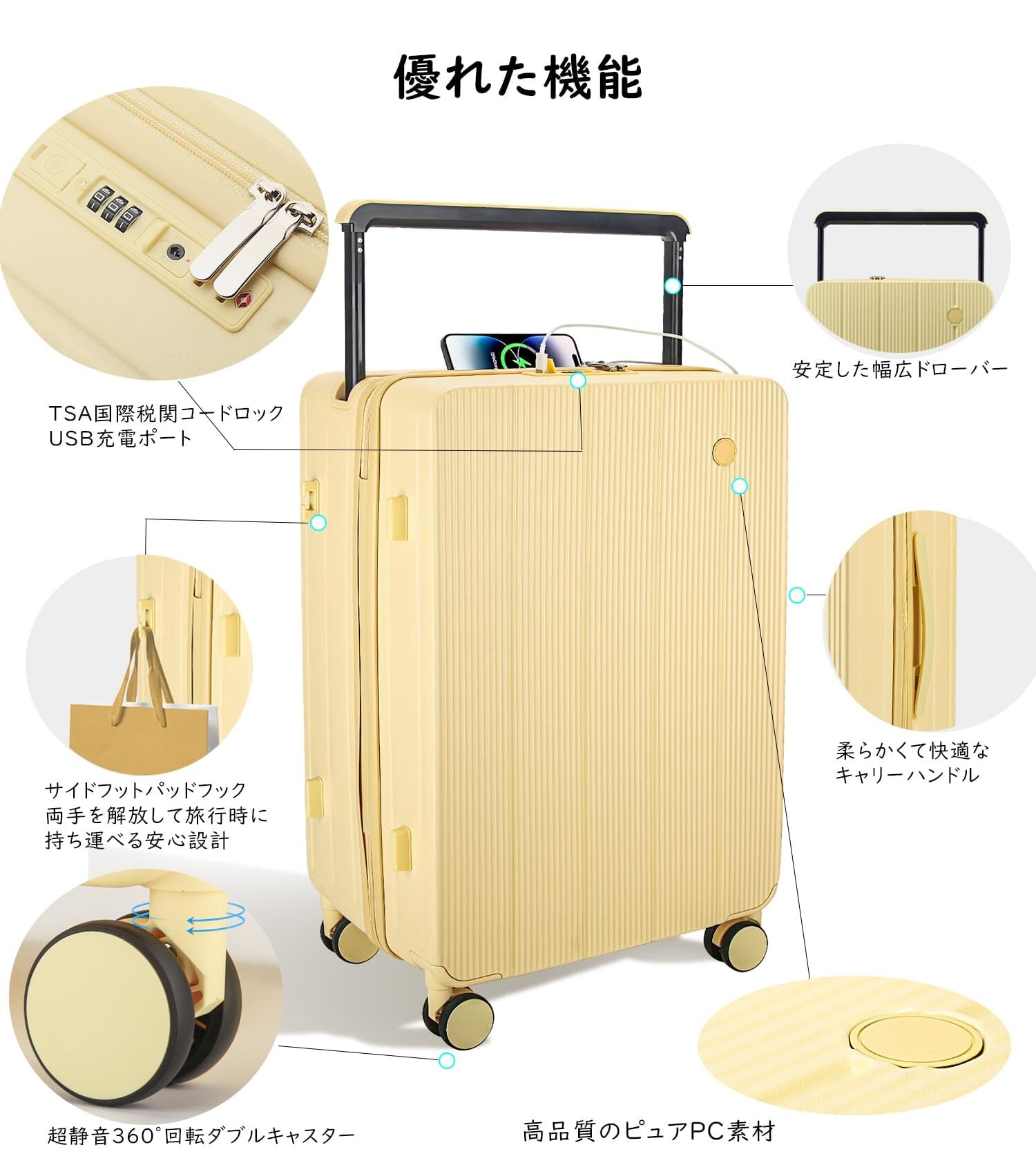 [Ashard] スーツケース 大容量 キャリーケース 超軽量 ピュアPC材質 USBポート付き 充電機能 フック機能 キャリーバッグ 耐衝撃 静音 360度回転 TSAロック搭載 人気 おしゃれ 幅広のレバーデザイン 旅行 ビジネス 出張 修学 (イエロー, 20インチ/機内持込/48L)