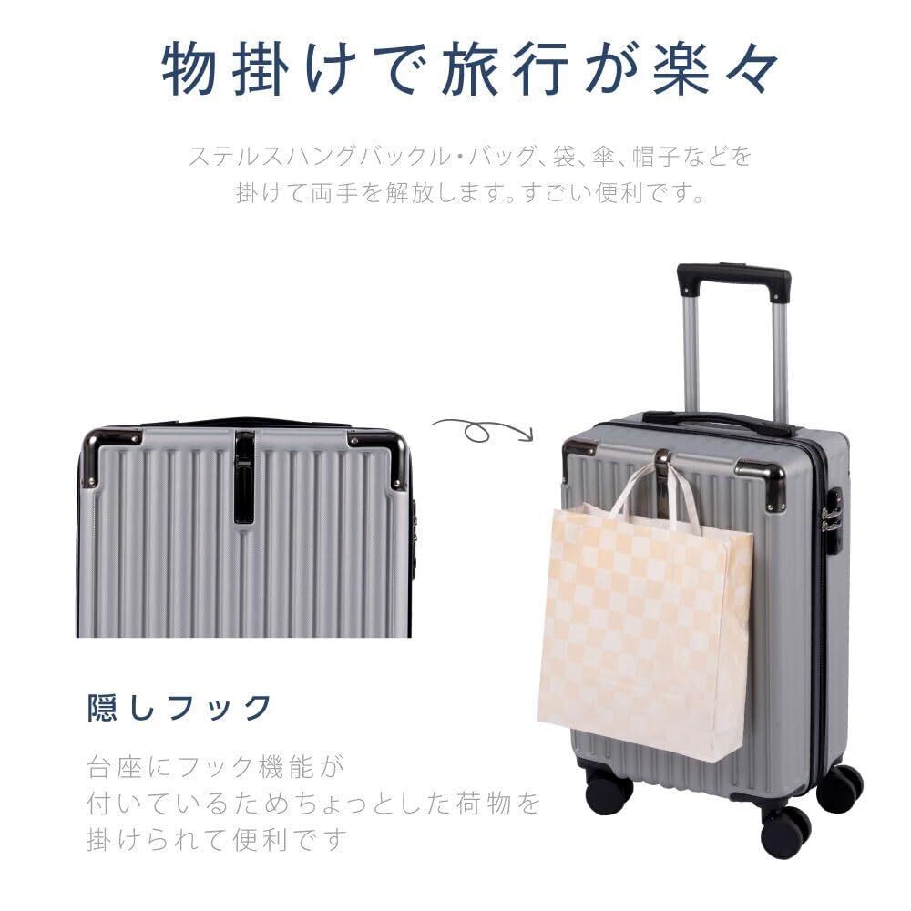[サインキングダム] スーツケース 機内持ち込み Sサイズ 38L キャリーケース キャリーバッグ 超軽量 隠しフック機能 360度回転 耐衝撃 静音 TSAローク搭載 泊まる ファスナー式 ビジネス 修学旅行 海外旅行 国内旅行 小型 出張 sc504 (ホワイト, Sサイズ/機内持込(1-3泊))