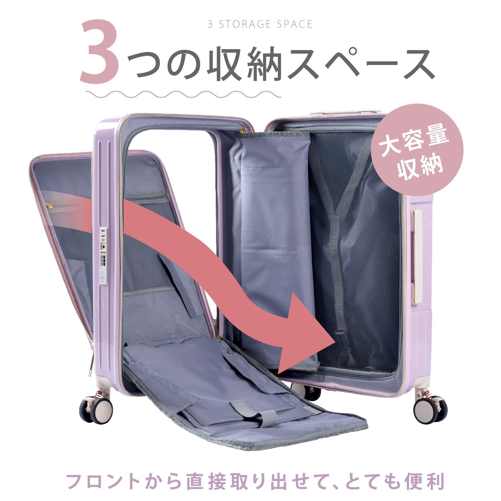 [チアキ] キャリーケース スーツケース 機内持ち込み フロントオープン ストッパー付き 大型 Sサイズ 39L 2泊3日 軽量 大容量 ファスナー式 USBポート付き カップホルダー付き 静音 360度回転 ダブルキャスター ビジネス 入院 出張 旅 sc119-20-iv