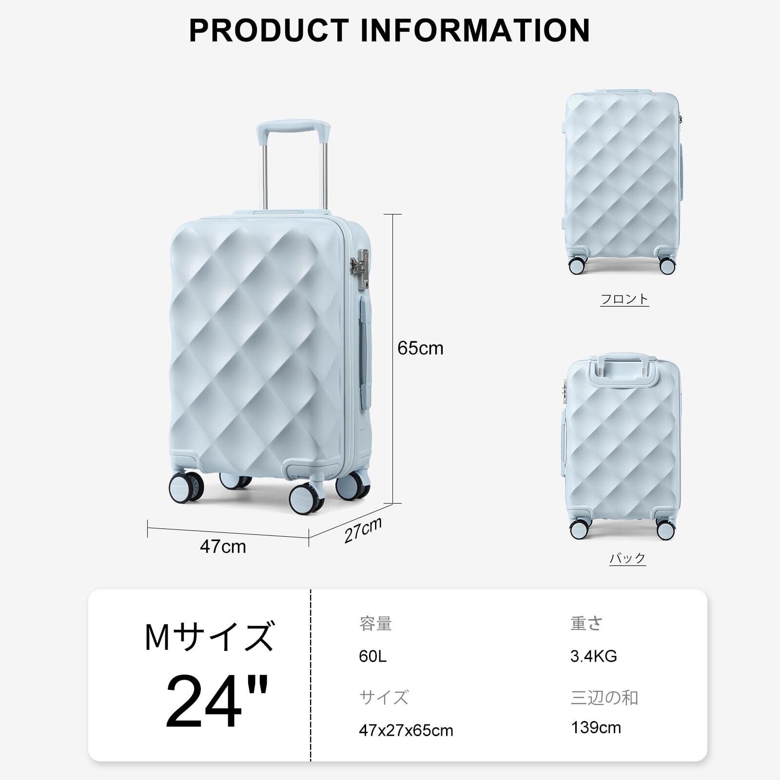[Sea choice] スーツケース キャリーバッグ キャリーケース 耐衝撃 大容量 軽量 静音 ダブルキャスター TSAロック搭載 スーツケース タグ出張 ビジネス 旅行 (Mサイズ, ライトブルー