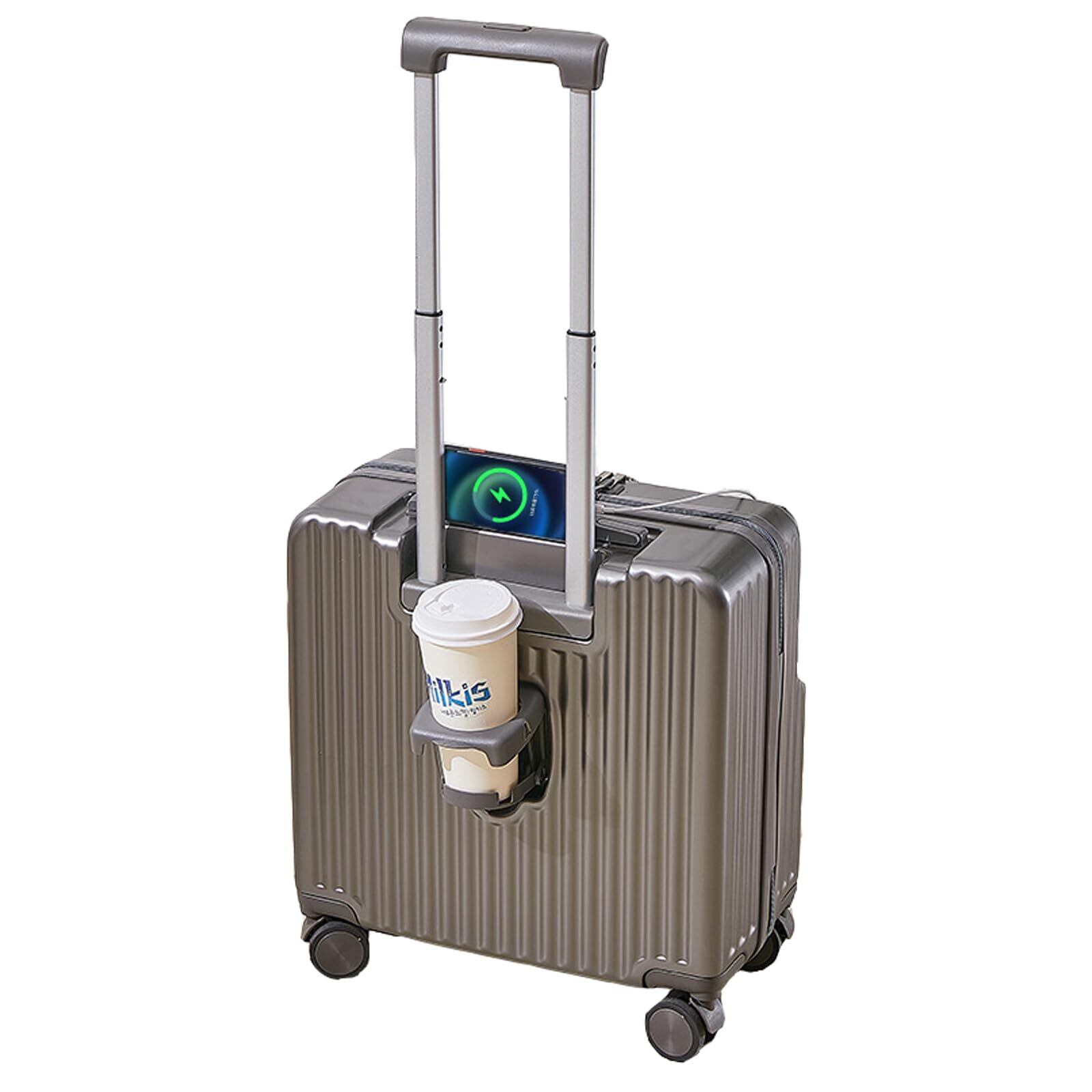 [Manatsulife] キャリーケース スーツケース 旅行 出張 超軽量 ssサイズ フロントオープン ミニ型 カップホルダー付き USBポート付 乾湿分離 ロック付 静音 耐衝撃 ビジネス おしゃれ XBM02 (ダークグレー, XS(33L,横型))