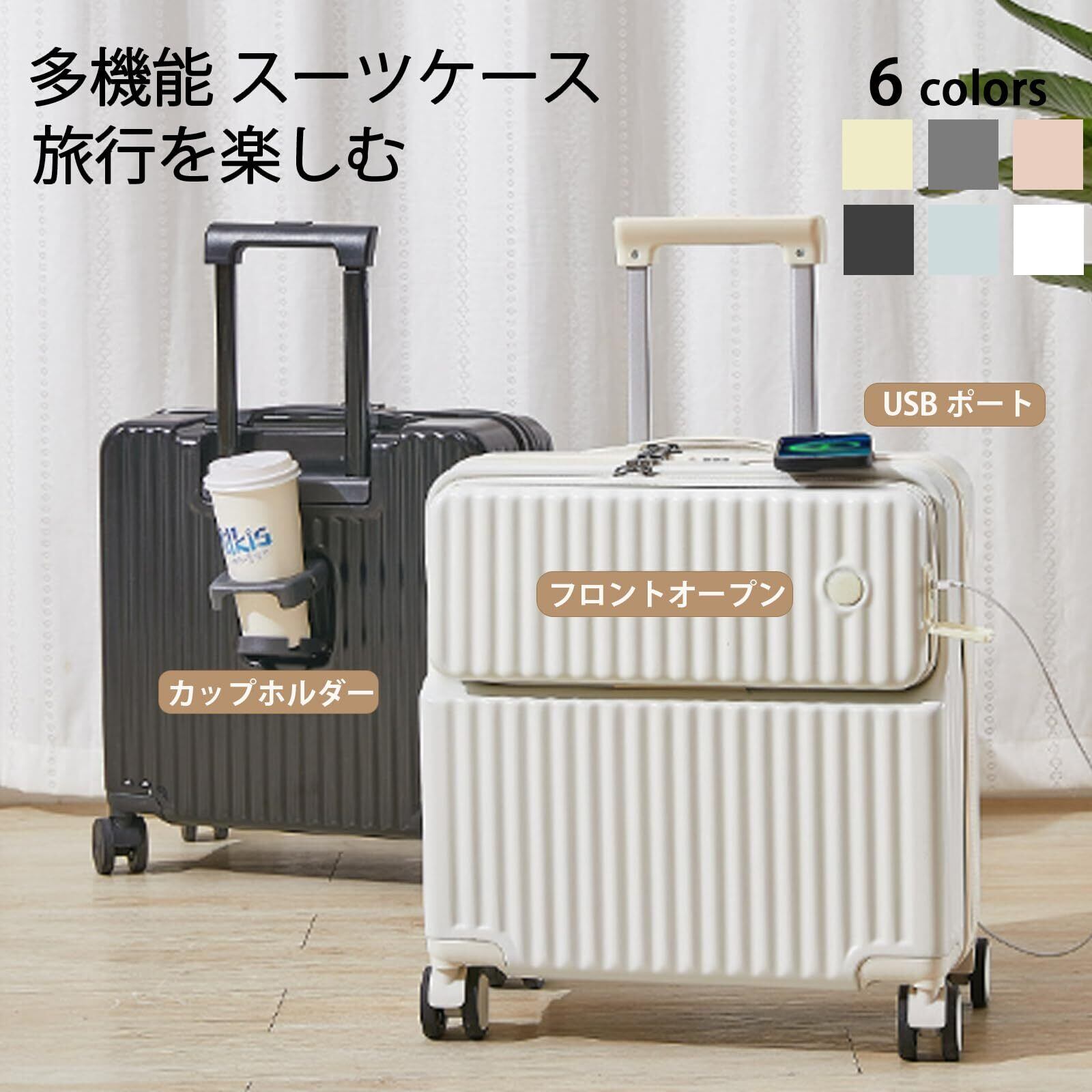 【在庫処分】[Manatsulife] キャリーケース スーツケース 旅行 出張 超軽量 ssサイズ フロントオープン ミニ型 カップホルダー付き USBポート付 乾湿分離 ロック付 静音 耐衝撃 ビジネス おしゃれ XBM02 (ダークグレー, XS(33L,横型))