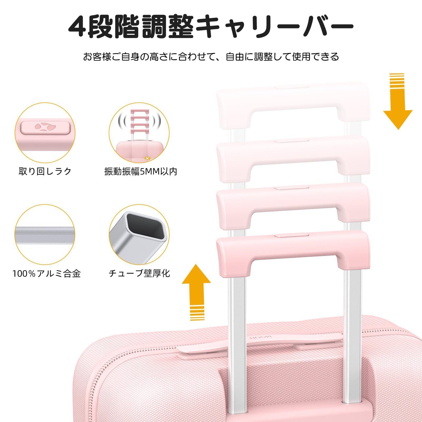 【特価セール】[MGOB] キャリーケース スーツケース 機内持ち込み キャリーバッグ 可愛い 超軽量 フック機能 耐衝撃 静音 ダブルキャスター TSAロック ファスナータイプ 旅行 ビジネス 出張(ピンク, Mサイズ 80L/5~10泊向き) | paghag