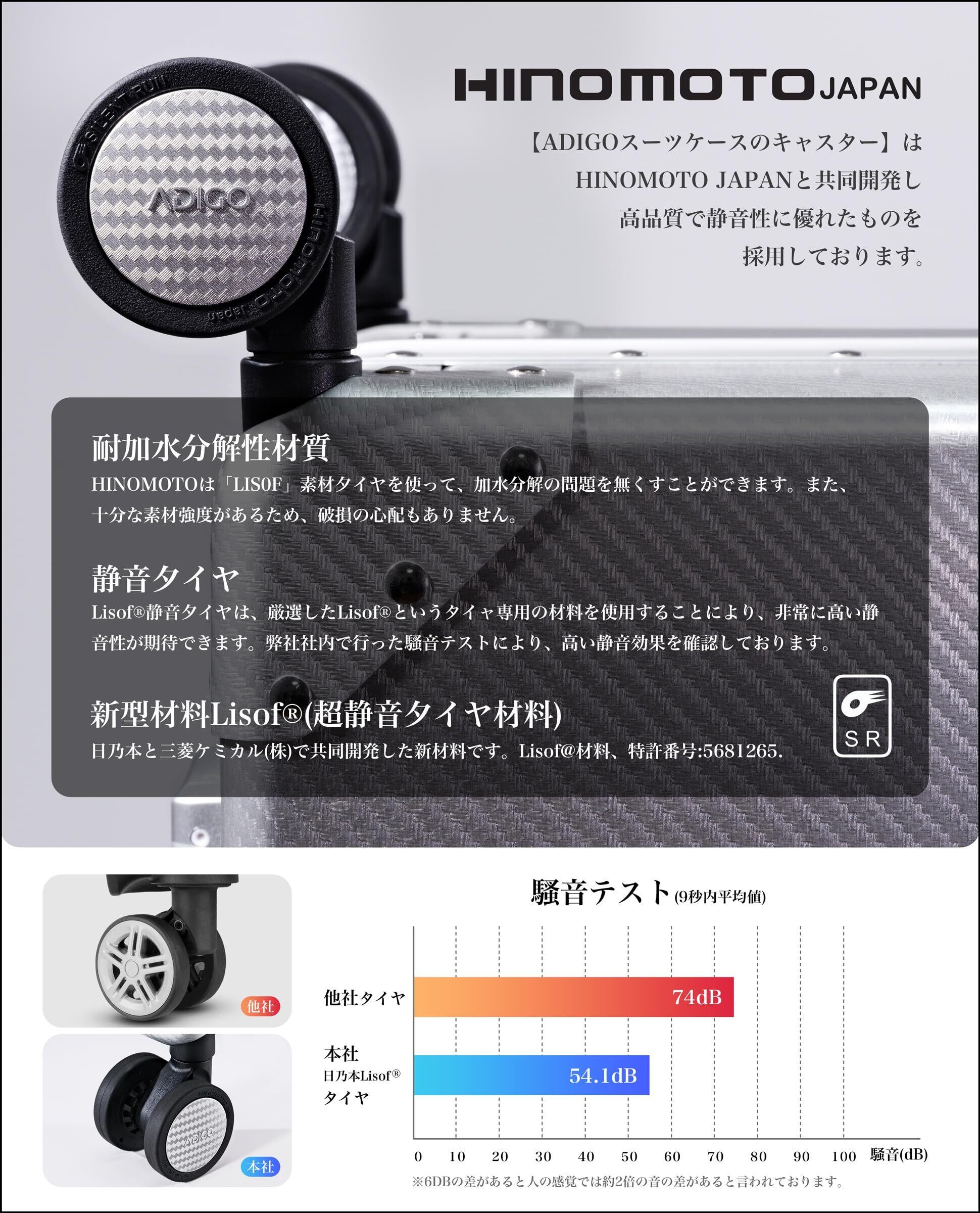 【フルアルミボディ・より厚いコーナーパッド】ADIGOスーツケースはアルミニウムを採用した造りで、傷がつきにくく、衝撃にも強い。 硬度はスチールと同じですが、スチールより数倍軽く、わずかな3.9kg!なめらかな本体のデザイがお気に入りのステッカーを自由に貼り付けられます。 移動中にスーツケースをぶつけて傷つけてしまう、そんな不慮な破損を防ぐために、同じアルミニウム合金素材のコーナーパッドを8つ搭載し、本体の頑強さがさらにアップし、コーナーからしっかりと守ります。