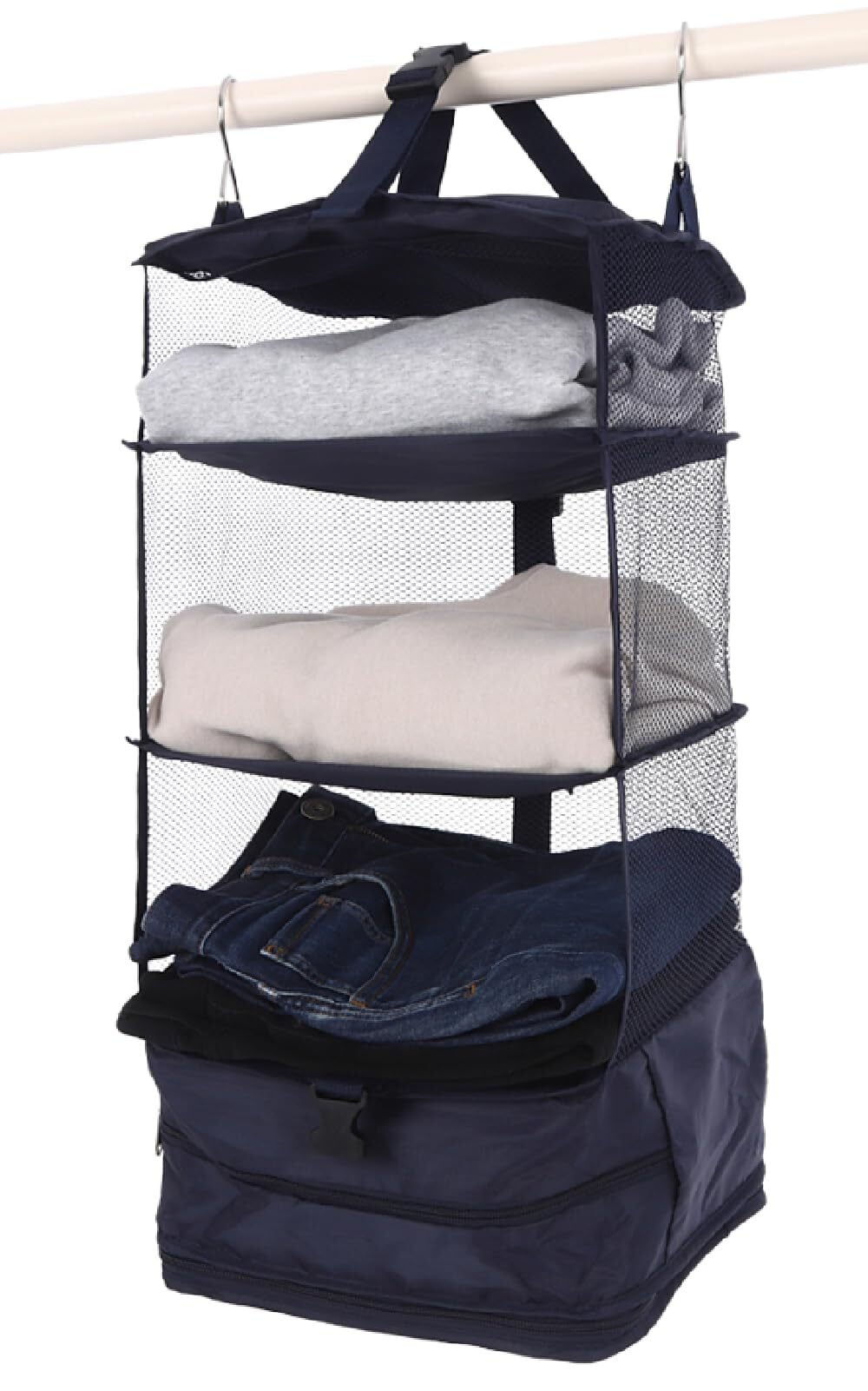 【大容量&取り出しやすい設計】 3つのオープン収納と1つのファスナー収納を備えたLIXIAトラベルポーチは、Lサイズで1〜2泊分、XLサイズで2~3泊分の衣類をきれいに収容可能です。特に1段目には小物用のメッシュポケットがあり、洗面所のポールやホテルの収納スペースに設置しておけば、毎日のコーディネートが簡単に行えます。出発前の朝も、すぐに必要な服を取り出せるため、手間を減らして快適な旅行をサポートします。