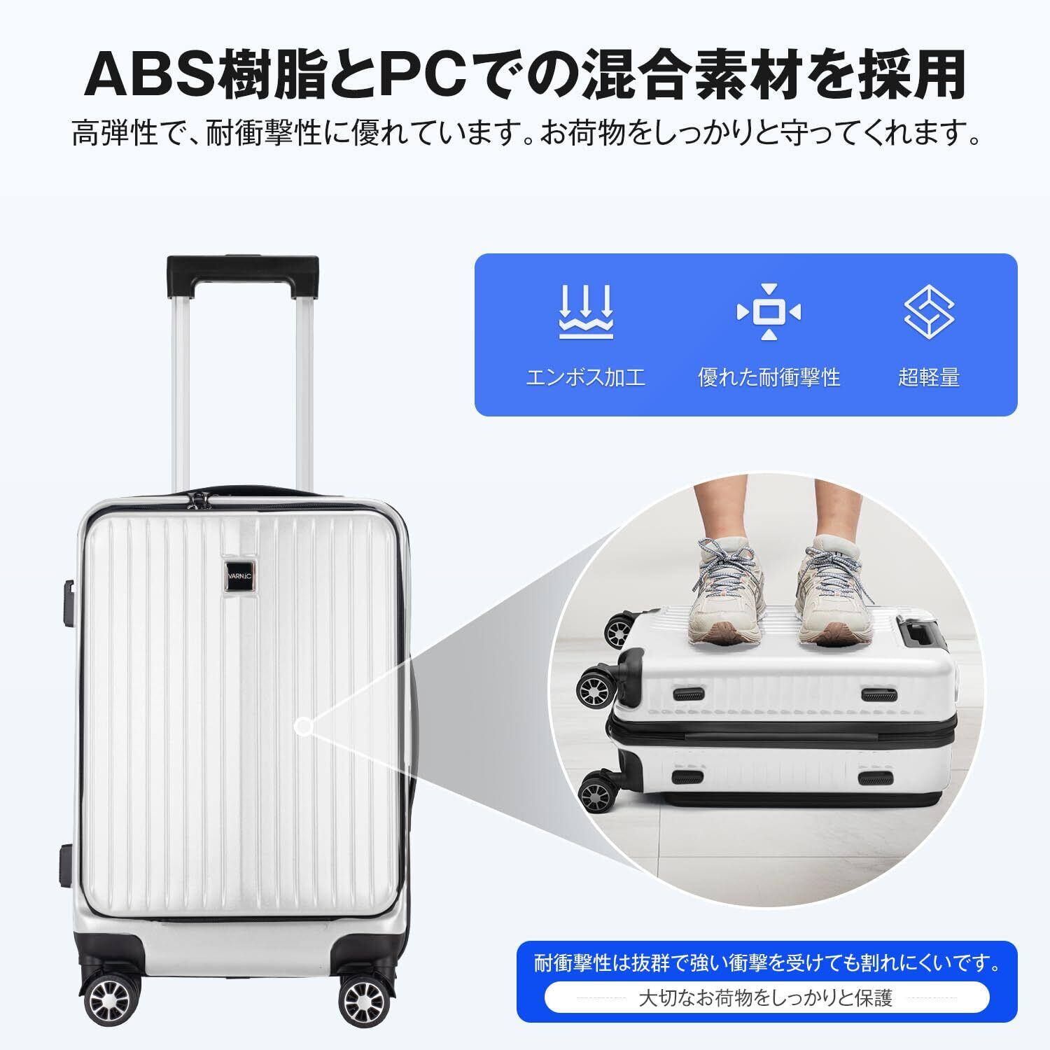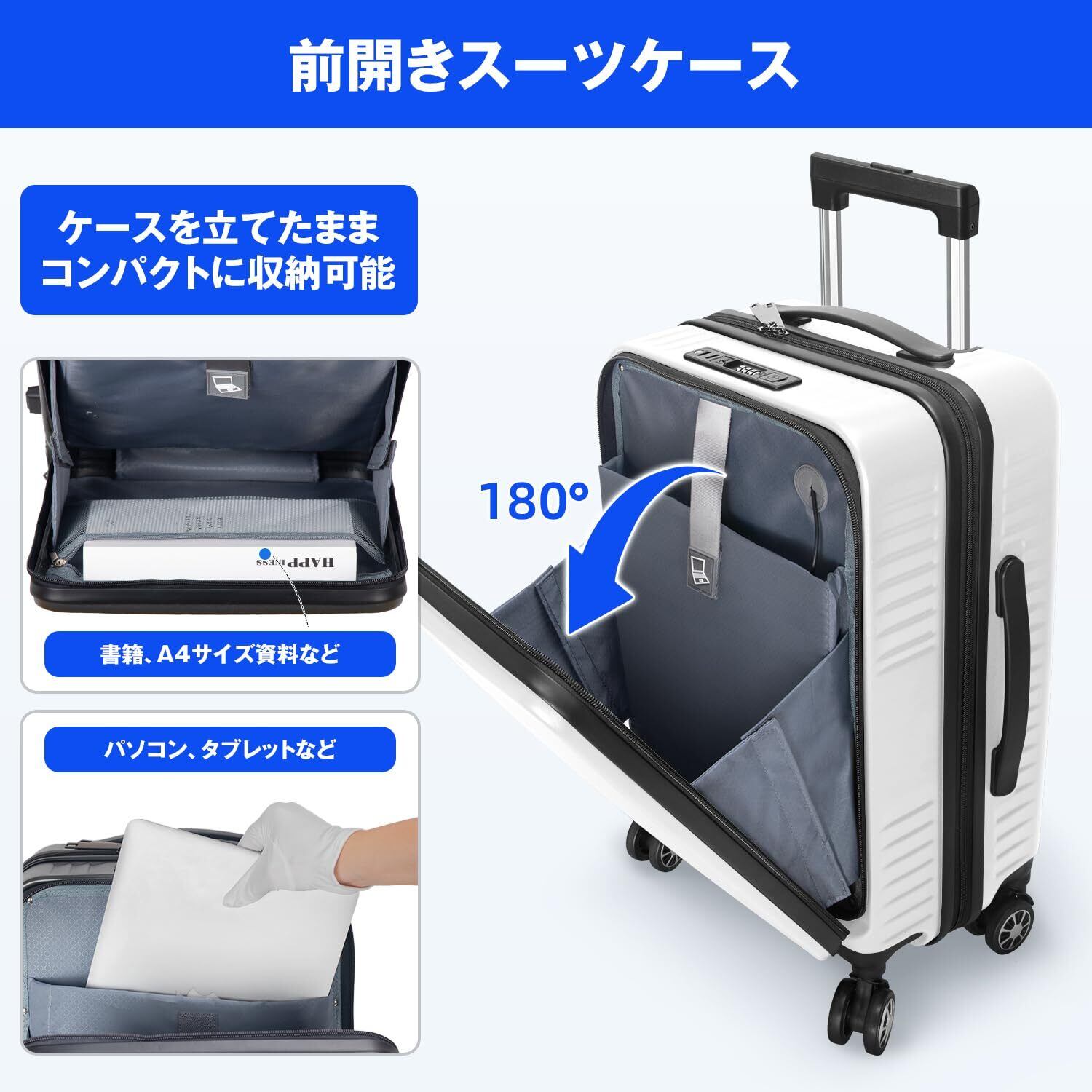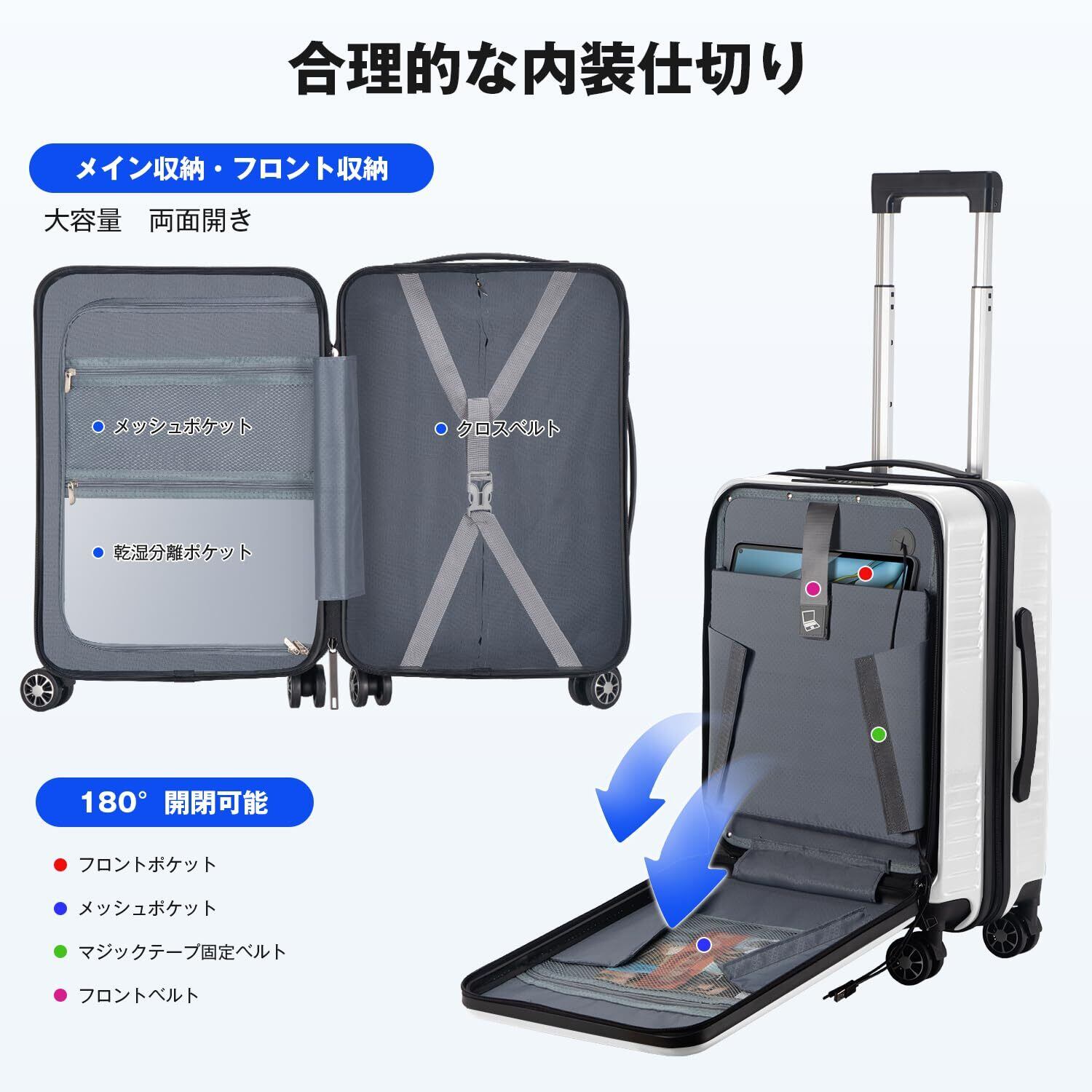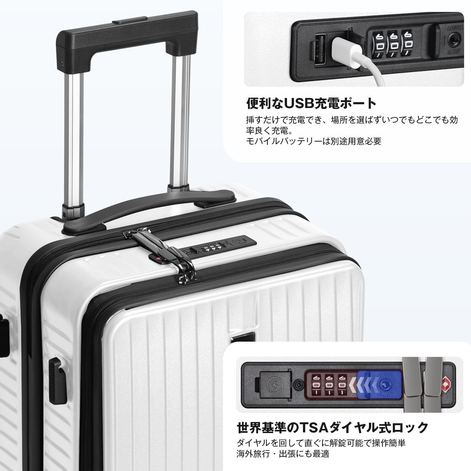 [VARNIC] スーツケース フロントオープン 多機能キャリーケース 超軽量 耐衝撃 前開き キャリーバッグ USBポート付き TSAダイヤル式ロック 360度回転 ダブルキャスター 振動軽減 軽量 旅行 ビジネス 出張 (ホワイト, Sサイズ/機内持込(1-3泊))