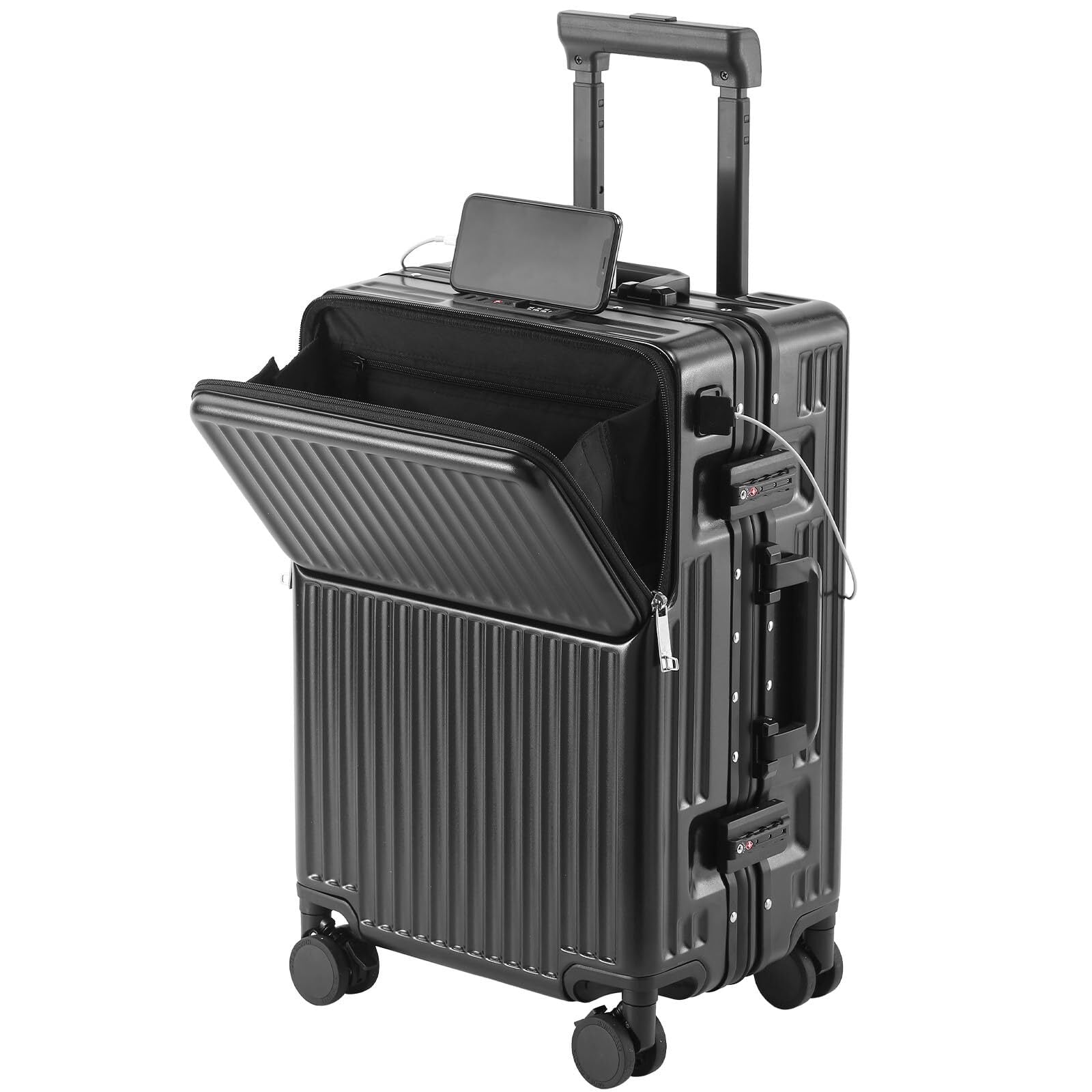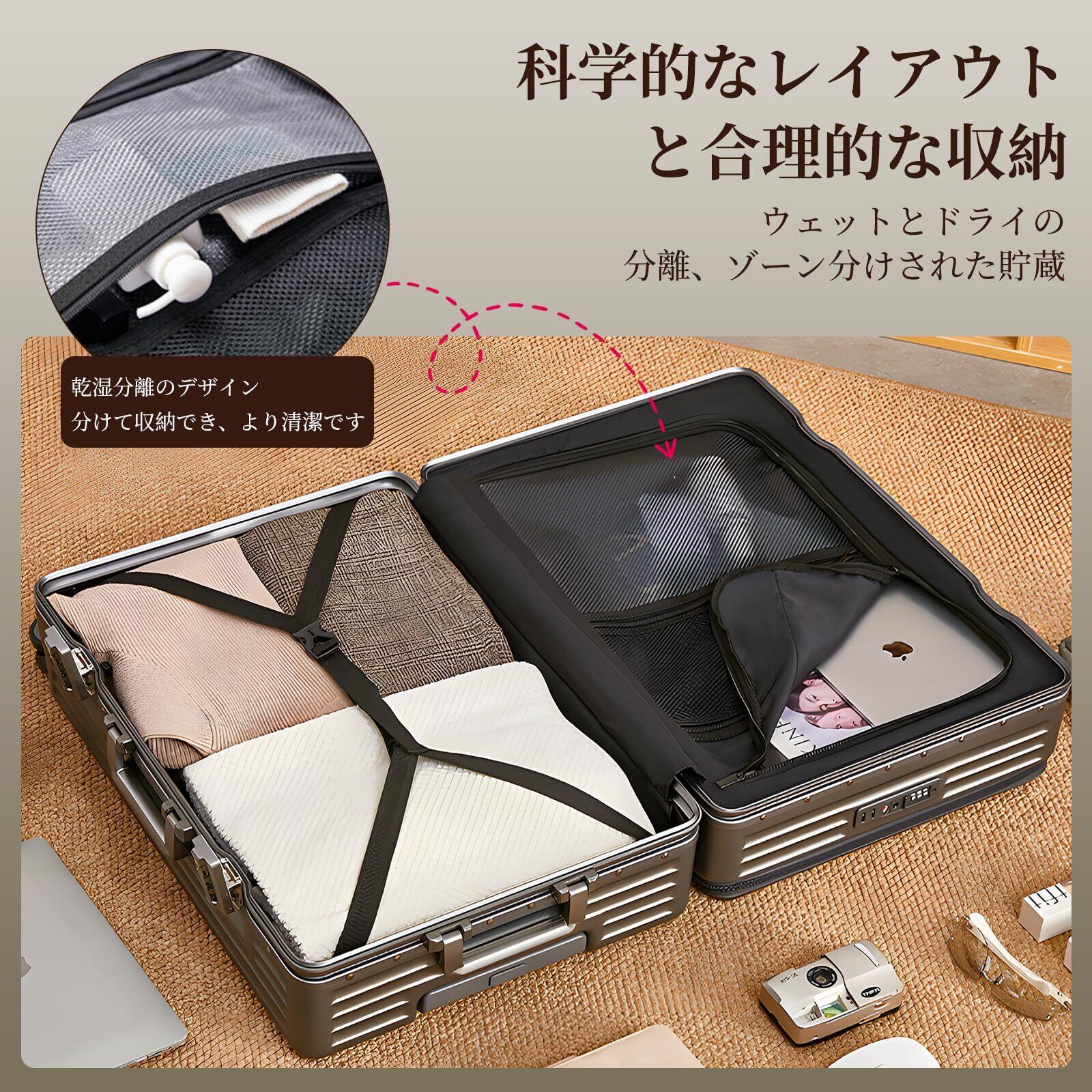 [KPLDOL] スーツケース 機内持ち込み ビジネス 出張 TSAローク搭載 静音ダブルキャスター 収納ポケット (BLACK, S)