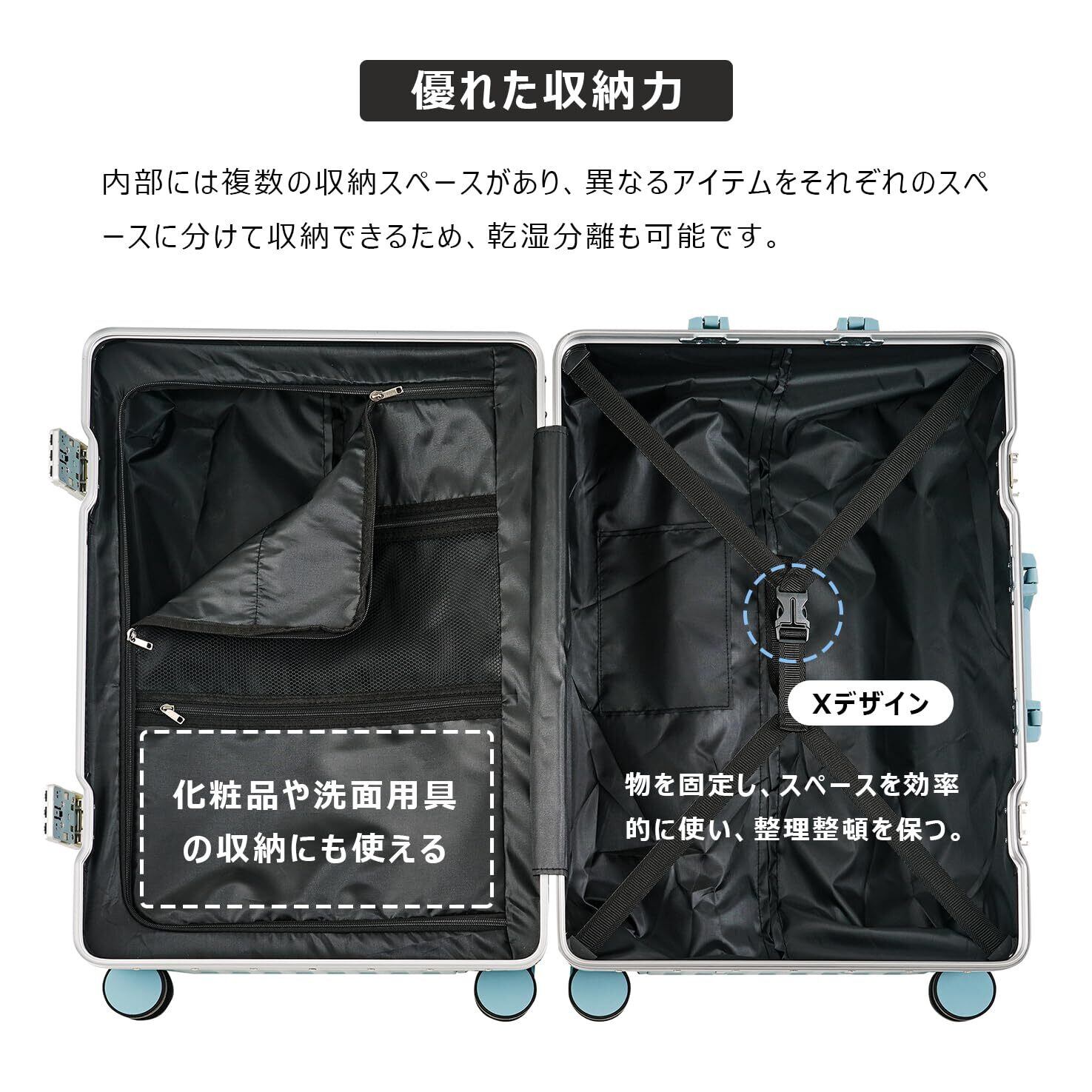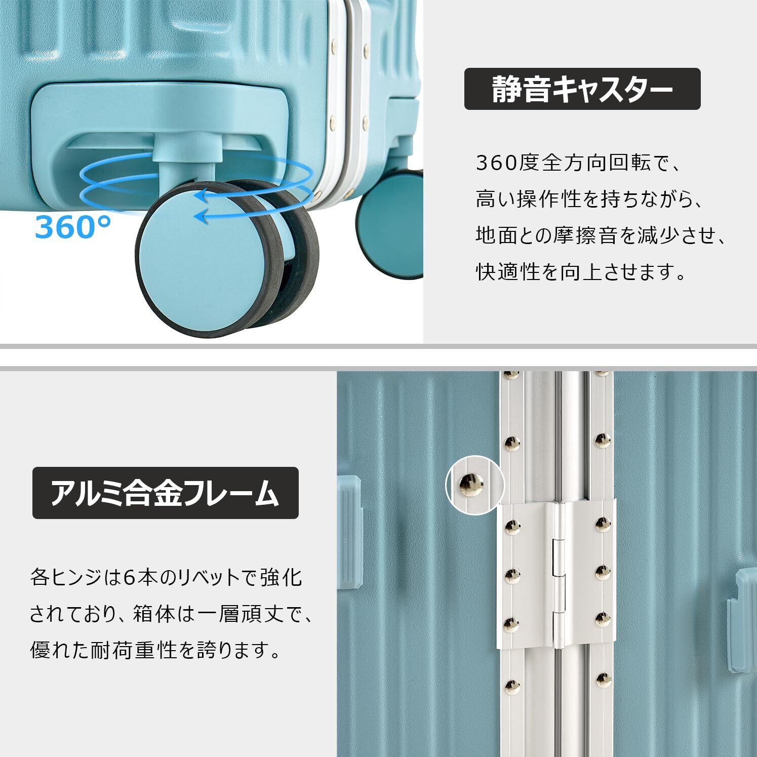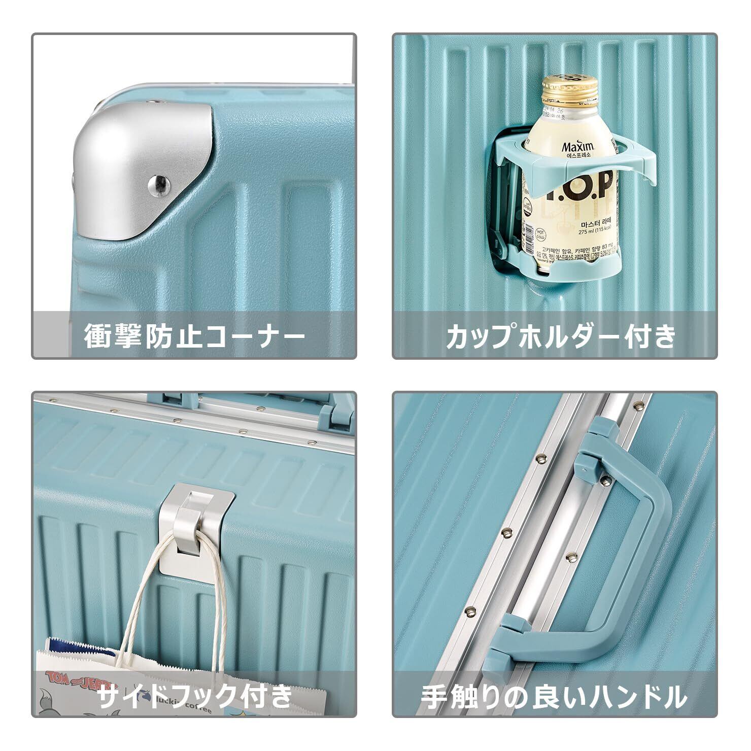 本社のスーツケースは、洗練されたスタイリッシュなデザインに、ABS+PC素材を採用した耐久性抜群の仕様で、長くご愛用いただけます。暗証番号ロック付きで、貴重品をしっかりと守り、さらに隠しフックやカップホルダーも搭載。快適で便利な旅のお供にぴったりです!