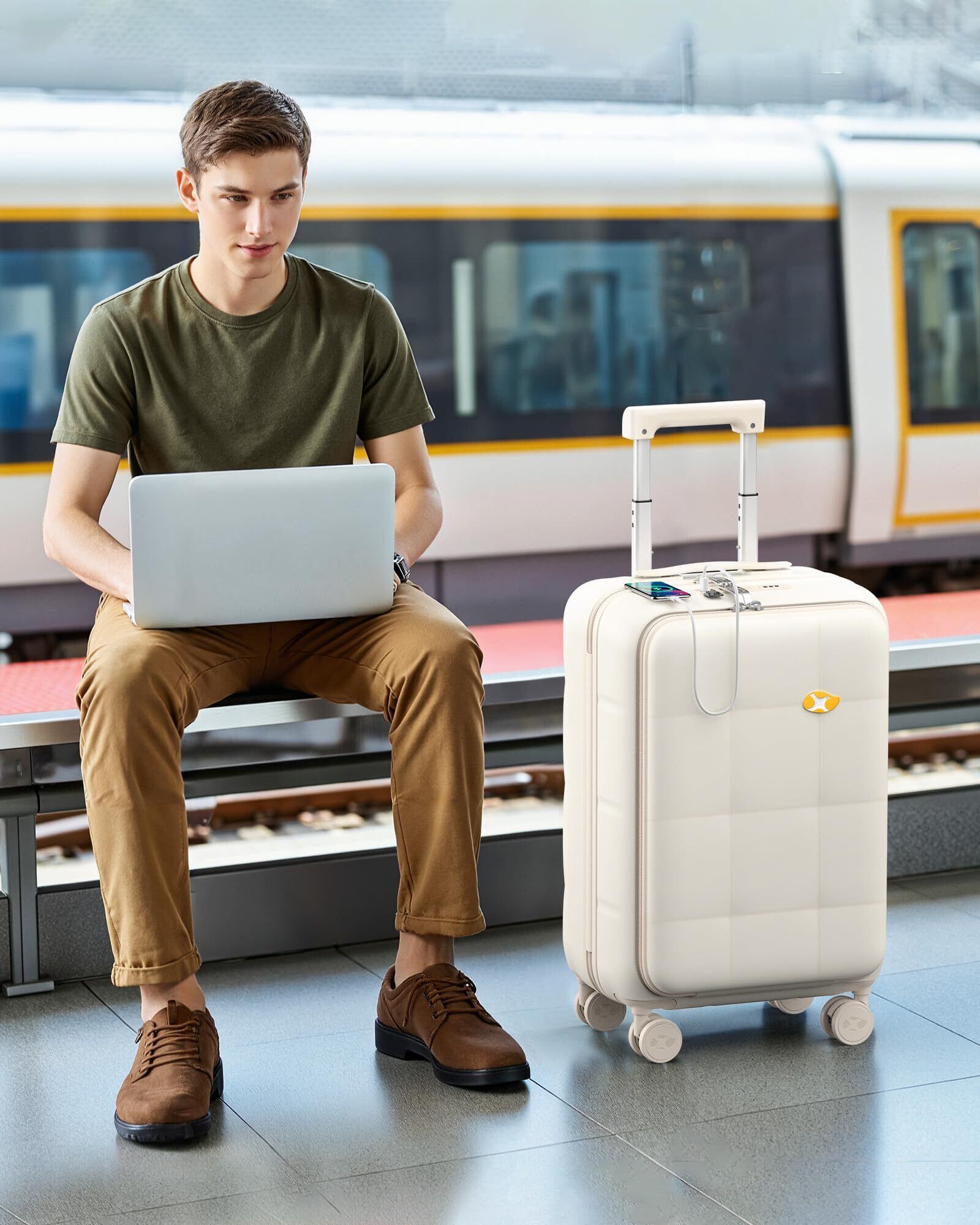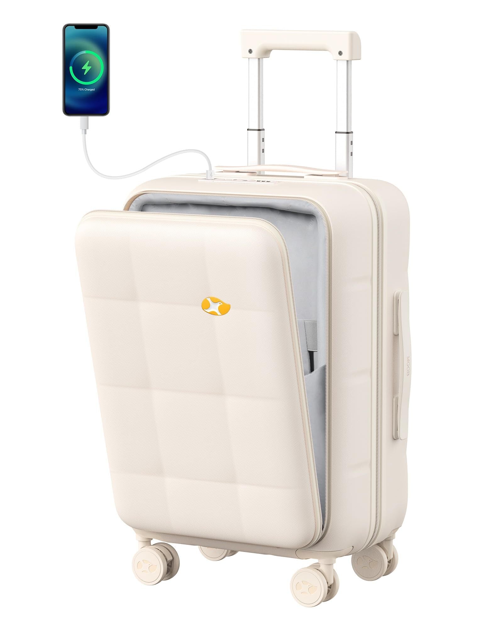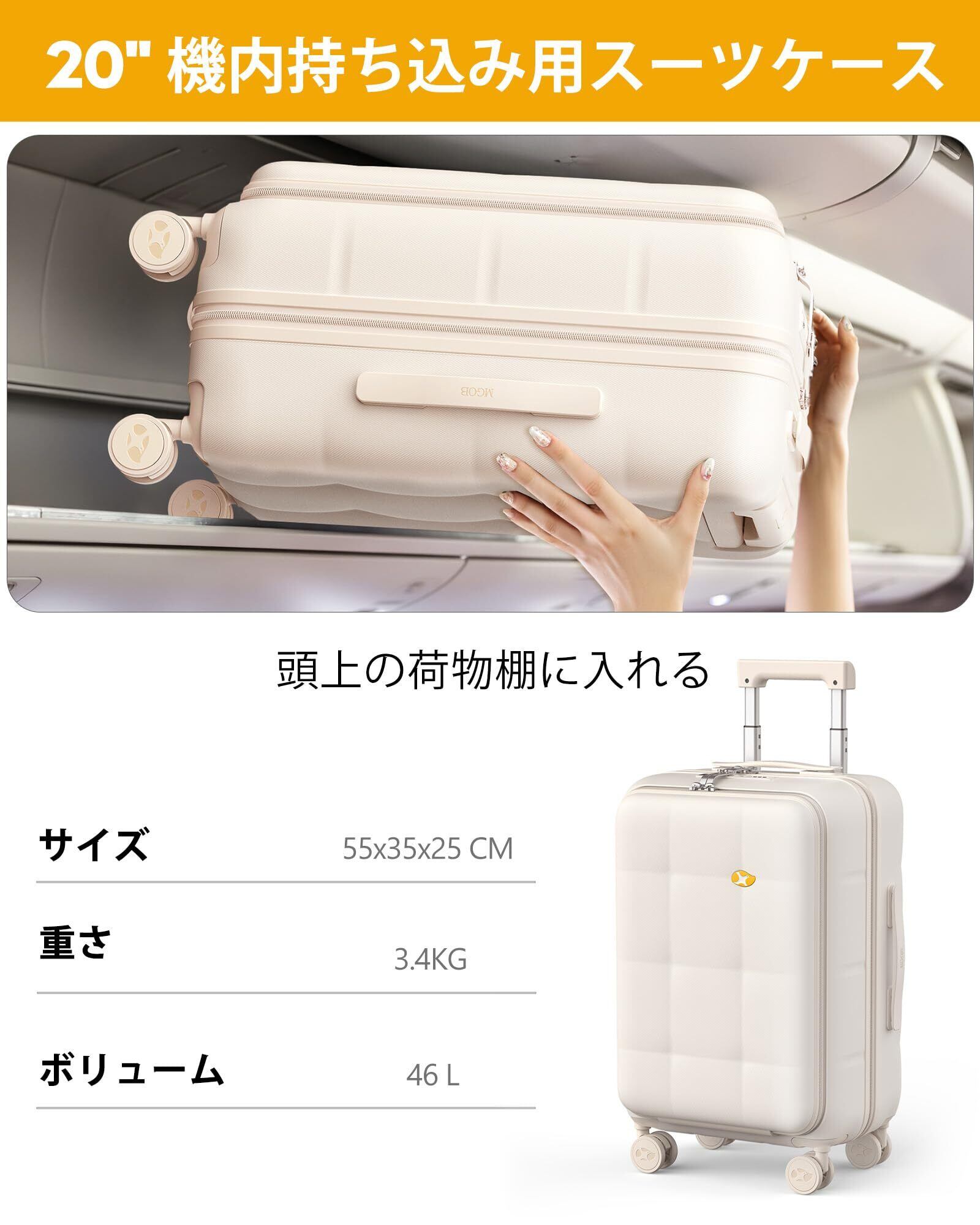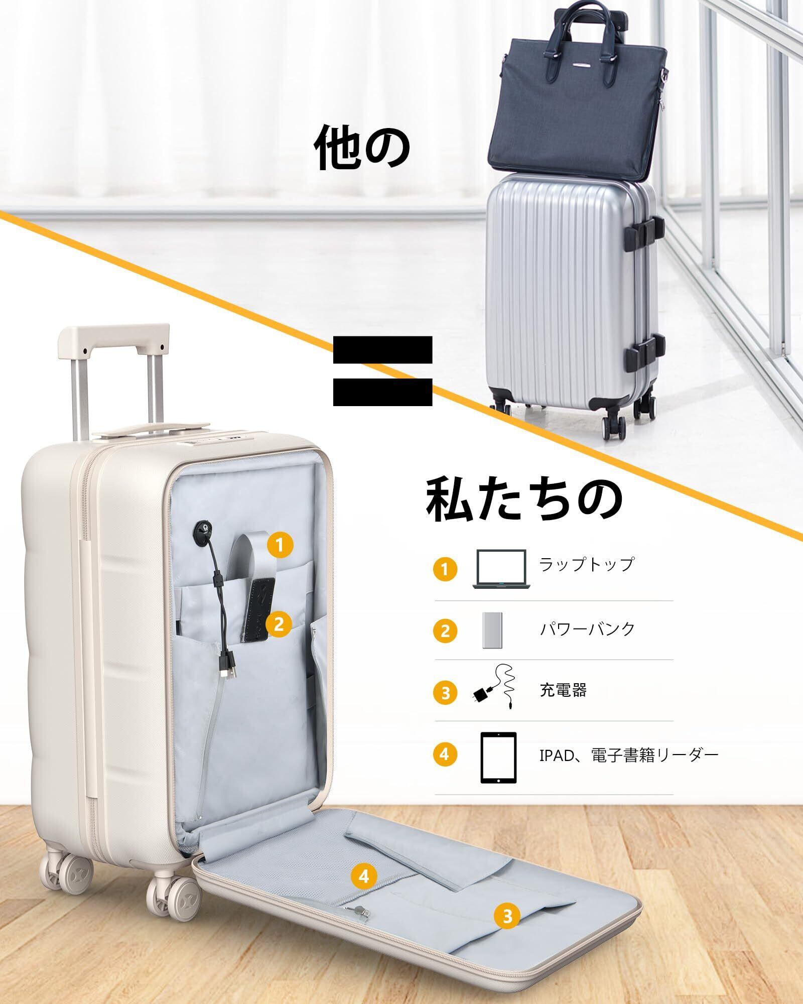 【新着商品】[MGOB] スーツケース 機内持ち込み Sサイズ 46L 3.4kg フロントオープン フロントポケット ストッパー キャリーケース キャリーバッグ 前開き 静音 ストッパー 耐衝撃 頑丈 旅行 ビジネス 出張 1-4泊 USB Type-C ポート付き YKKファスナー TSAロック ベージュ | paghag