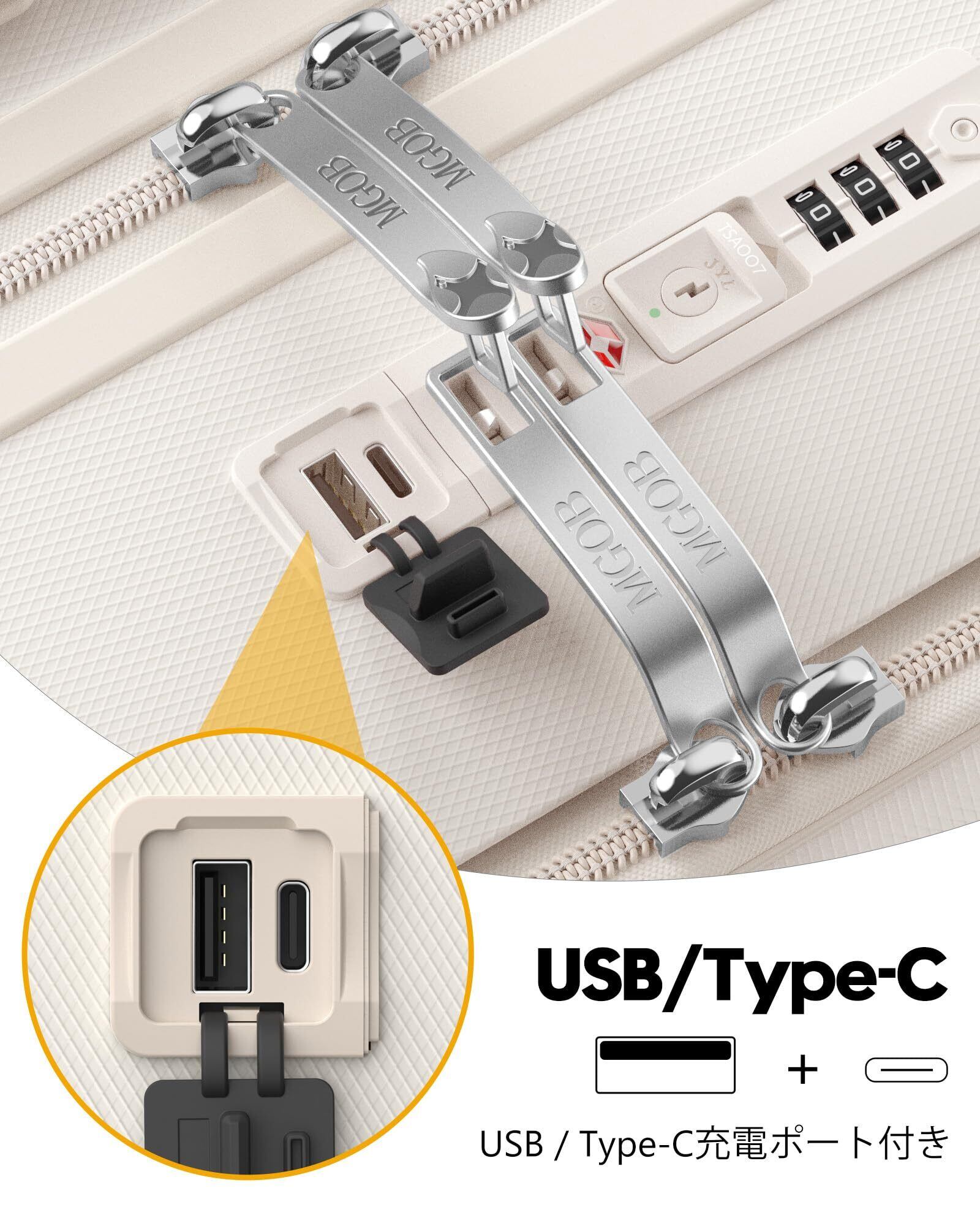 [MGOB] スーツケース 機内持ち込み Sサイズ 46L 3.4kg フロントオープン フロントポケット ストッパー キャリーケース キャリーバッグ 前開き 静音 ストッパー 耐衝撃 頑丈 旅行 ビジネス 出張 1-4泊 USB Type-C ポート付き YKKファスナー TSAロック ベージュ