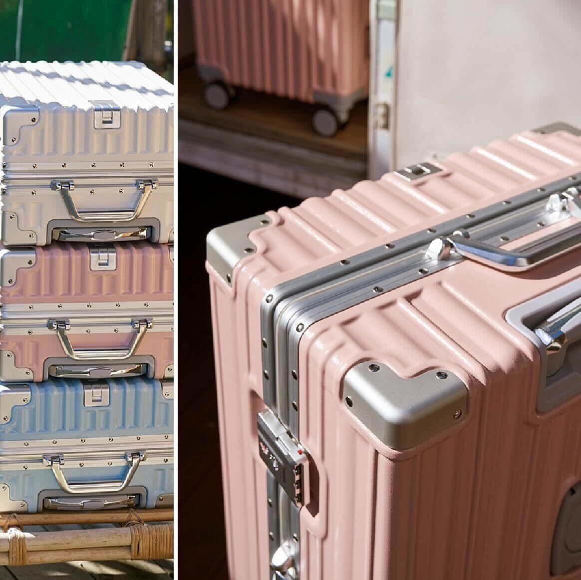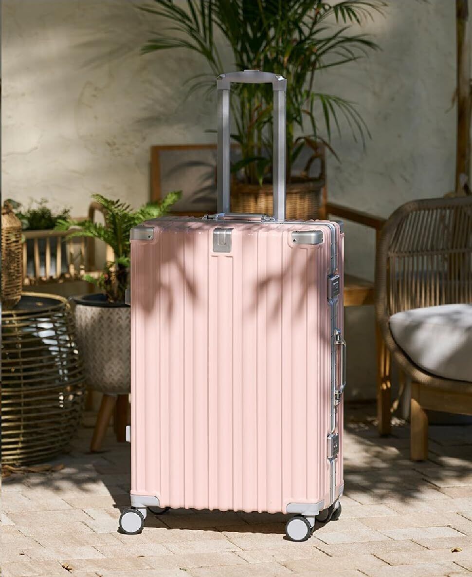 【人気商品】[Spyplan] スーツケース 軽量アルミフレームタイプ 大型 キャリー ケース XLサイズ 7泊以上 大容量 機内持ち込み キャリーバッグ 隠しフック機能 静音ダブルキャスター 耐衝撃 隠しフック機能 カップホルダー付き TSA ロック 旅行 ビジネス 出張 人气 レディース ピンク,90L | paghag