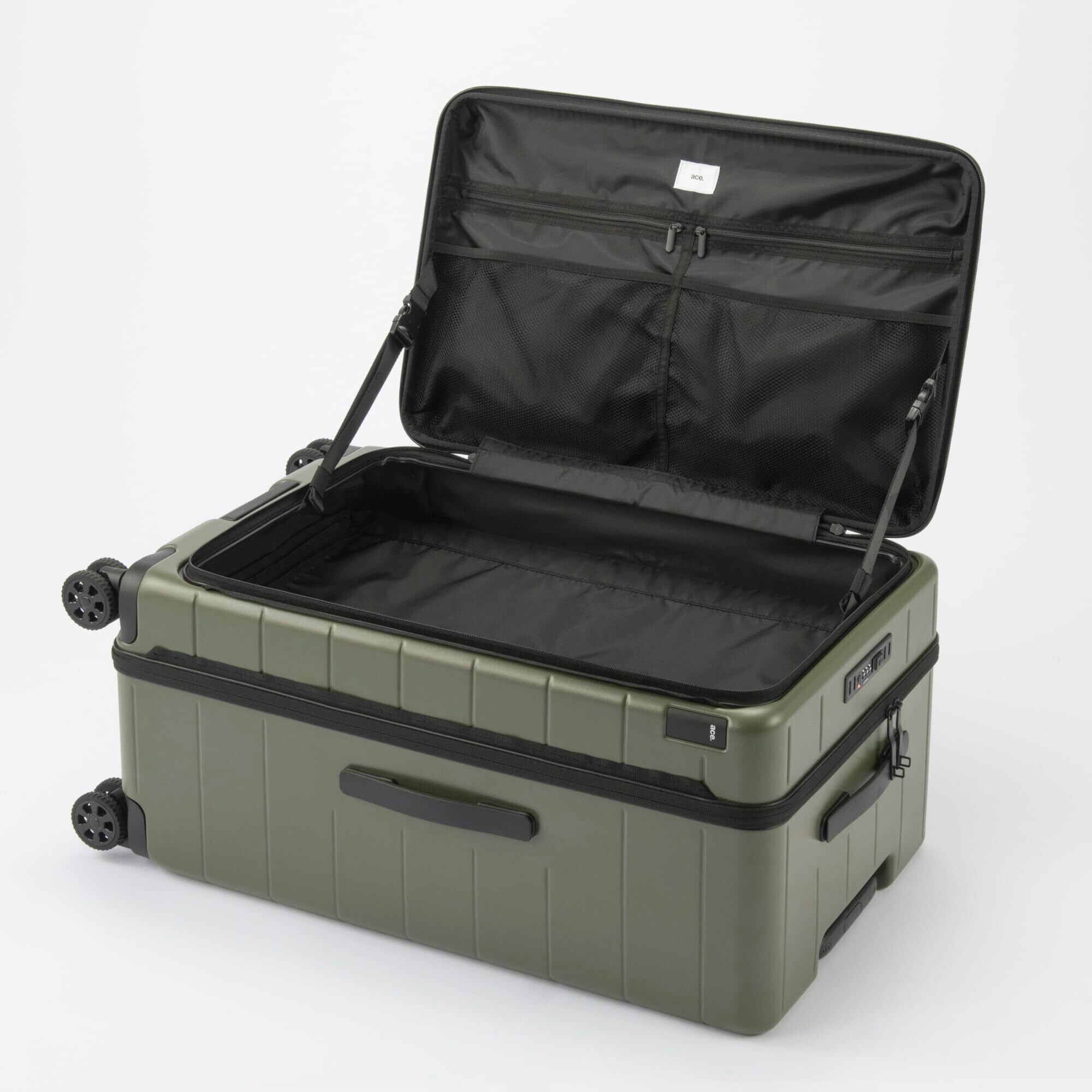 【2022最新】[ACE] スーツケース 大型 大容量 lサイズ 7泊8日 8泊9日 9泊10日 95L アウトドア 非常時 フロントオープン 大型双輪キャスター 5.1kg キャリーケース キャリーバッグ テオフィールド No.05163