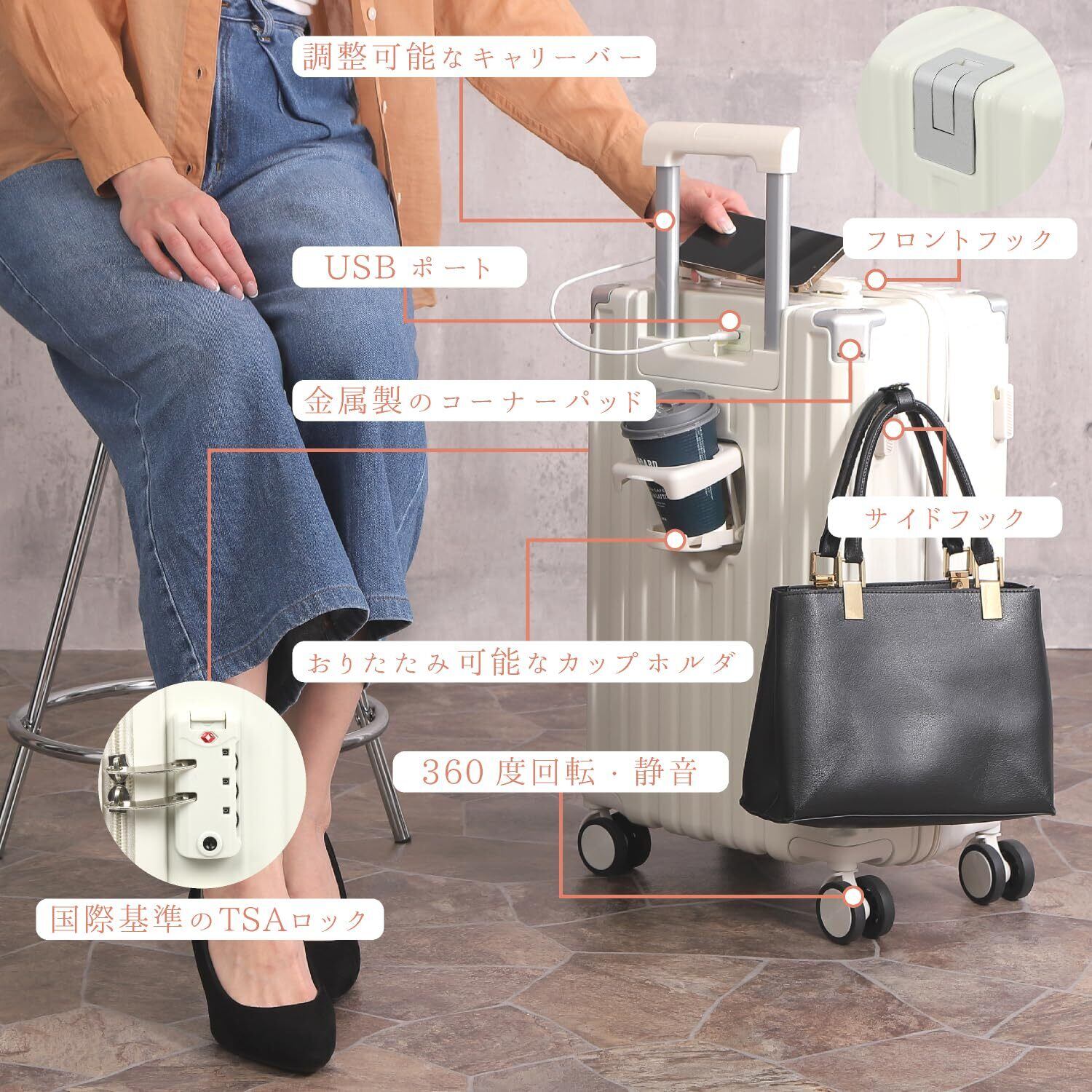 [JOYME] スーツケース USBポート付き(機内持込 / 1-4泊) 様々な機能で快適な旅行をサポート (カップホルダー付き/フック機能/TSAロック/収納力◎ / 軽量/静音) 国内線 国際線 キャリーケース キャリーバッグ (ブラック/Sサイズ 38L)