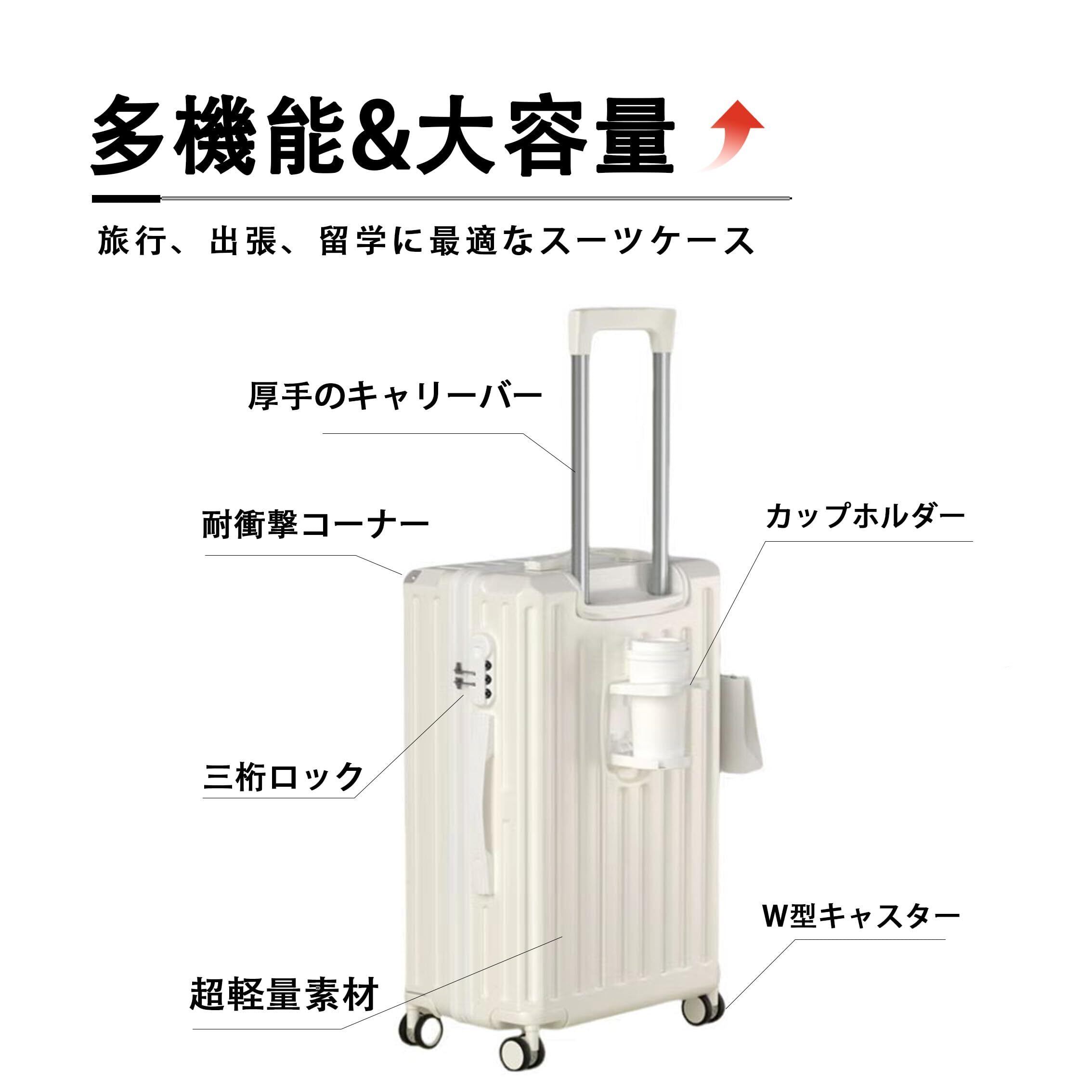 【新着商品】[楽ジャー RAKU JOURNEY] スーツケース キャリケース 大型 機内持ち込み キャリーバッグ ファスナー式 ダイヤルロッグ 小型 超軽量 静音 ダブルキャスター カップホルダー付き 隠しフック 修学 旅行 帰省 出張