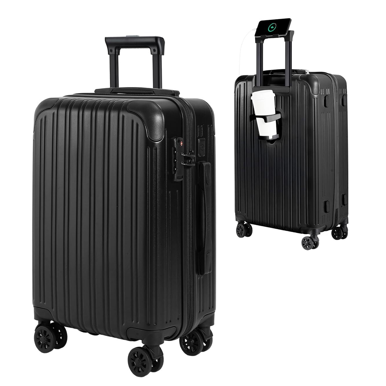 【2022最新】[GURAMU] スーツケース キャリーケース キャリーバッグ 機内持ち込み S Mサイズ USBポート付き カップホルダー付き 隠しフック機能 充電機能 静音 ダブルキャスター 耐衝撃 360度回転 軽量 修学 泊まる 旅行 出張 (ブラック, Mサイズ(44*26.5*67cm/65L))ke101m-blkb