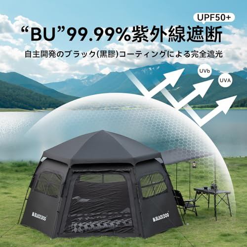 【公式】BLACKDOG ワンタッチテント 大型六角屋 3.5m 2~8人用 UPF50+ 設営簡単 uvカット 自立式 耐水圧PU3000 3つの前室 初心者向け 前室ポール付き キャンピング アウトドア ファミリーキャンプ お花見 収納袋付き | paghag