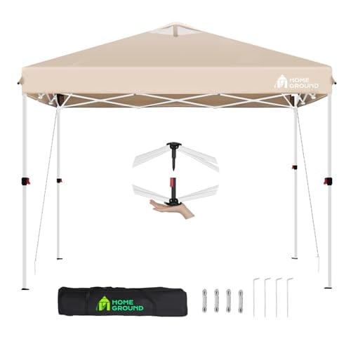 HomeGround ワンタッチ タープテント 3m×3m【センターロック式】組立て簡単!! 【高耐水PU+UVカットシルバー塗装】 タープ テント 3段階高さ調整 遮光 遮熱 アウトドア・イベント・運動会 カーキ