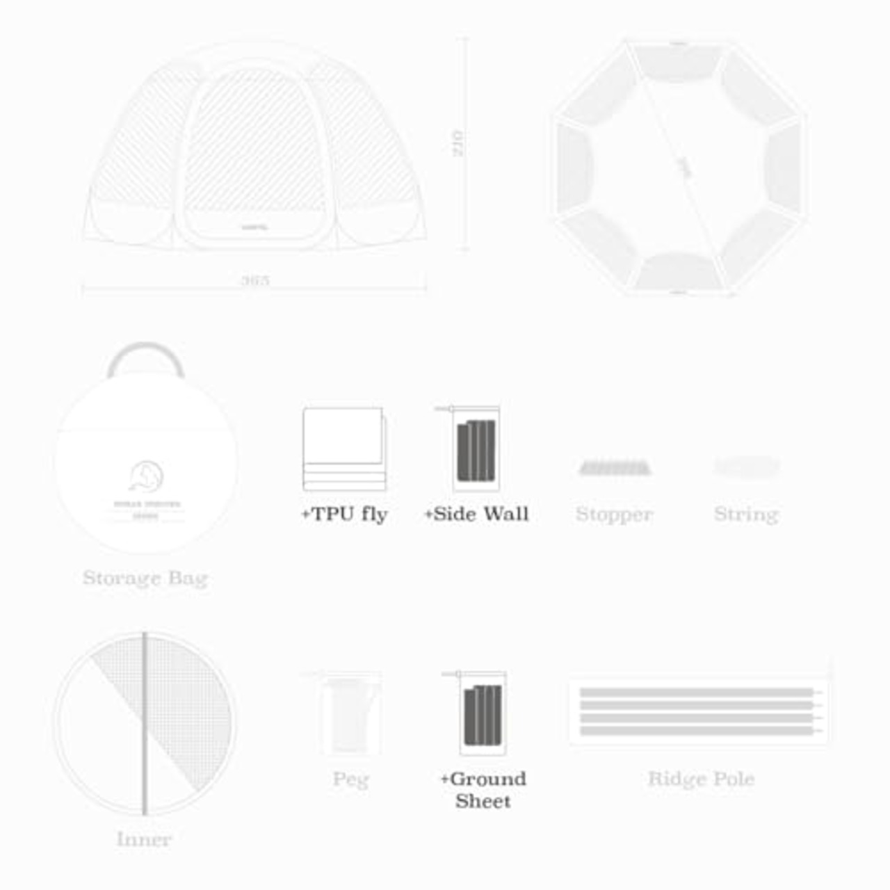 *追加オプションセットの付属品:サイドウォール2枚(360度視野遮断)・グランドシート・TPUフライ