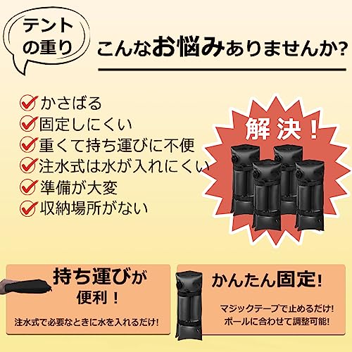 ウェイトバッグ テント 重り 4個セット大容量 タープテント用 バンドテープ付き 注水タイプ マルチウェイト 屋外 重し袋 ワンタッチタープ ビーチパラソル 万能ウェイト (ブラック*8set) | paghag
