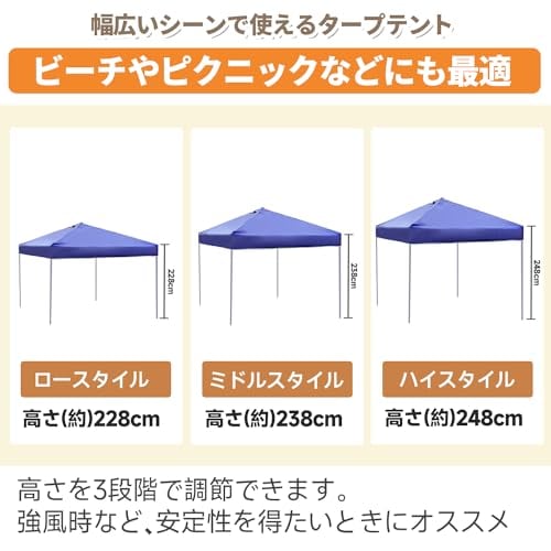⛺「耐水圧1200mm」以上の強力な耐水圧性能。一般に500mmで子雨程度で普通の雨にも対応できるとされています。テントの縫い目に「シーム加工」。生地の縫い目部分にシーム加工を施している為、縫い目からの雨漏れにも強い。❊耐水性はございますが、設置時のテントの弛みや、雨の水量によっては商品の破損等の可能性がございます。 雨による商品破損等に関しましては、対応が出来かねてしまいますので、ご了承下さいませ。