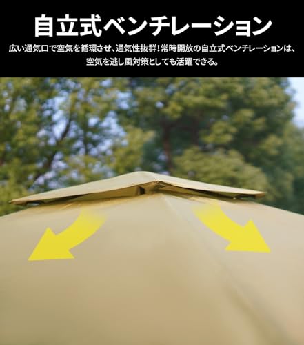 【設営&撤収簡単】ワンタッチタープは取付も撤収もすごく便利で、初心者も簡単に操作できます。専用の収納バッグも付きで、コンパクトに持ち運べます。