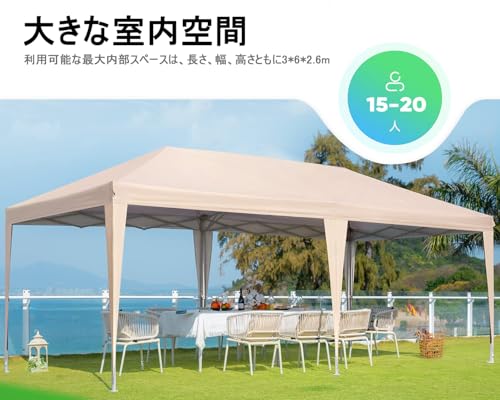 ワンタッチ タープテント 3m×6mUVカット 3段階調節/ウエイトバッグ砂6個付き スチール キャンプ アウトドア 大型テント キャンプ用品 ワンタッチテント タープ キャスター付きバック 店頭販売 屋外 集会用 車庫 大型 少年野球 サッカー 試合応援 運動会 町内会 屋台 イベント(カーキ)