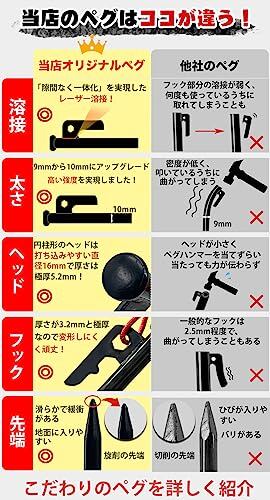 専用のペグ収納ケース付き、ペグハンマー、ペグ、ロープ、自在金具などを1つのケースにまとめて収納できる。使用後、コンパクトに収納し、持ち運びが便利。