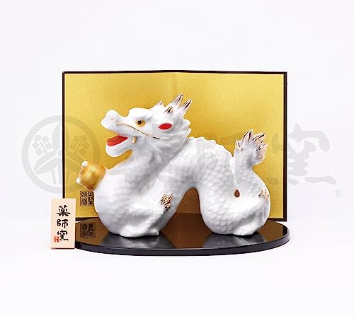 辰(たつ)が天空に向かって舞昇ろうとする姿には「立身出世」や「運気上昇」など様々な願いが込められ尊ばれてきました。また辰が手に持つ玉は「宝珠(ほうじゅ)」と呼ばれ災いを除け清らかな一年でありますようにとの願いが込められています。