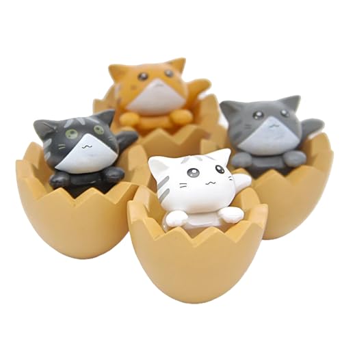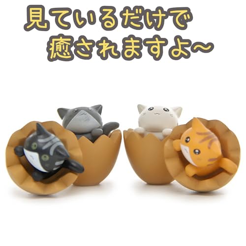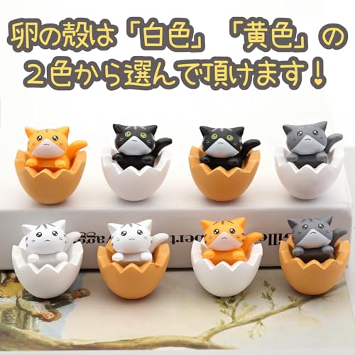 ミニチュア猫のフィギュア4個セット 【サイズ】3×3×3㎝ 【カラー】卵:白色、黄色 猫:白、黄、灰、黒の4個セット