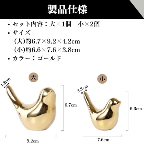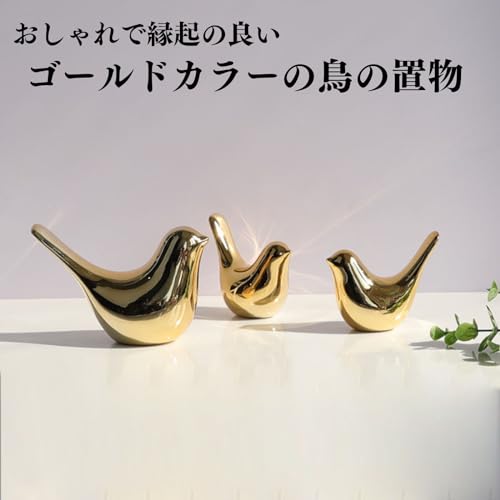おしゃれで縁起の良いゴールドカラーの鳥の置物3個セット。シンプルなデザインなのでどんな場所にも合わせやすいです。風水で鳥の置物は縁起が良いとされ、緑や幸運を運んでくれるとされています。