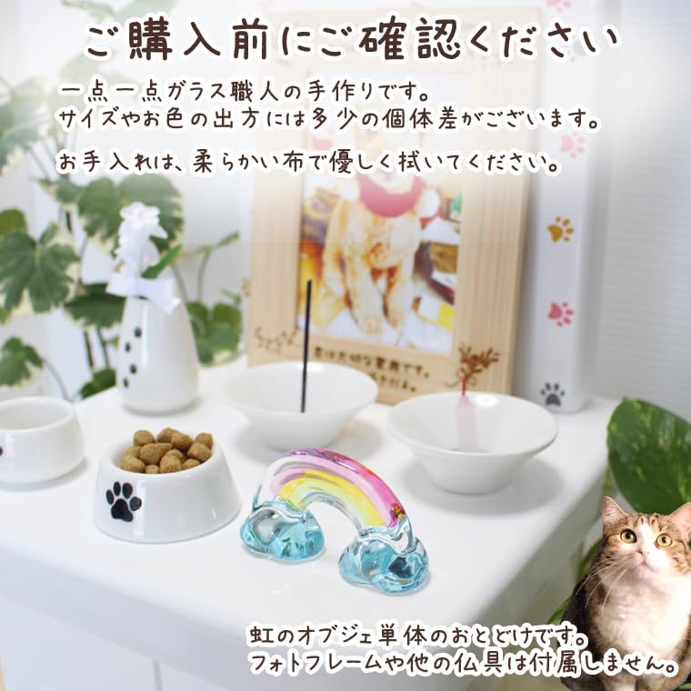 「虹の橋で待っててね」の想いを込めて、手作りのクリスタルガラスオブジェが生まれました。