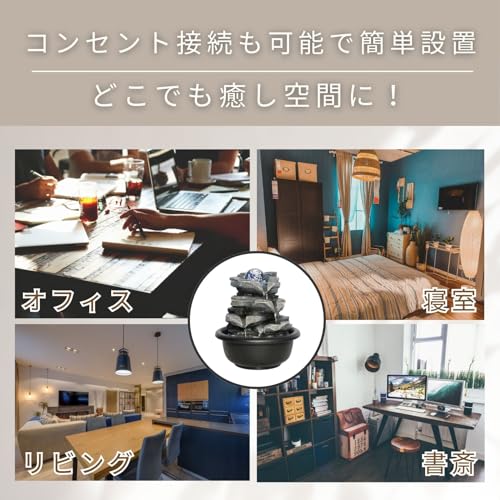 【卓上噴水で癒し インテリア】 この卓上噴水は、リラックス効果のある水の音で癒しの空間を演出します。ストレス解消やリラックスタイムに最適なインテリアです。