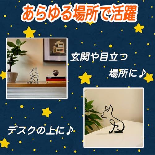✅商品説明文5: 『モダンかわいい犬の置物』おしゃれなインテリアにぴったりなワイヤーアートの置物。抽象的でモダンなデザインは、どんな空間にも馴染みます。庭や玄関先に置いたり、リビングルームのアクセントにしたりと、様々なシーンで活躍します。アイアン素材でつくられたかわいい犬のオブジェは、モダンでありながらも温かさを感じられる一品です。ギフトとしても喜ばれるアイテムです。