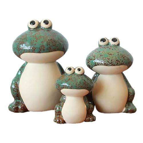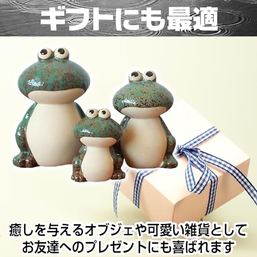 【カエル 置物 仕様】 ◎サイズ:〈大:横12×奥行8×高さ16.5cm〉〈中:横9×奥行6×高さ12.8cm〉〈小:横8×奥行5×高さ9cm〉 ◎材質:陶器
