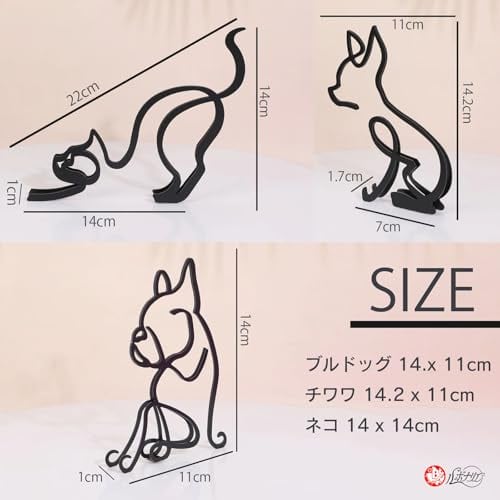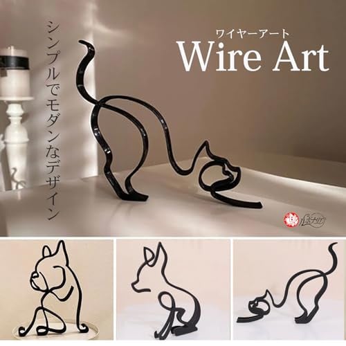 シンプルでモダンなデザインが特徴のワイヤーアートです。ブルドック、チワワ、ネコの3種類をご用意いたしましたので、お好みに合わせてお選びください。シンプルで洗練されたメタルアートが、インテリアを一段と引き立てます。リビングや玄関に置くだけで、空間が一気におしゃれに変わります。