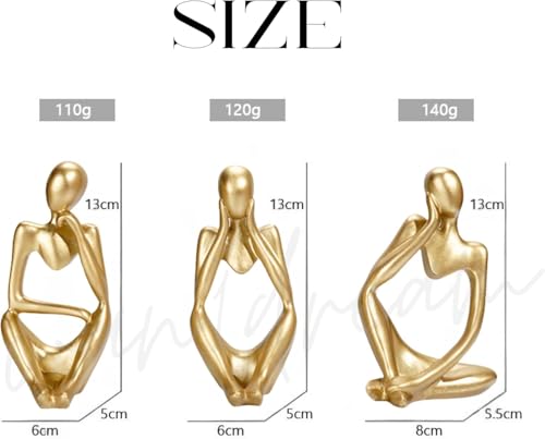 ヒューマンオブジェ【シンキングスタイル-3体セット】 人型オブジェ 置物 抽象アート モダン インテリア 雑貨 デコレーション 彫刻 飾り おしゃれ コンパクト 卓上 リビング 玄関 書斎 考える人 (ゴールド) | paghag