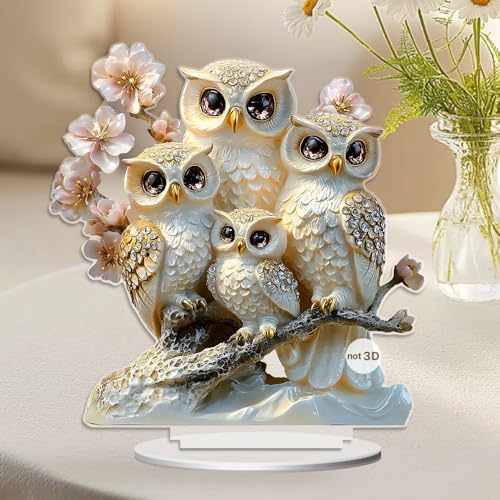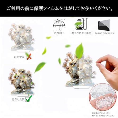 デザイン性: 美しい結晶装飾が施された白銀のフクロウと桜の花をモチーフにした、繊細で優雅なアクリルスタンド置物です
