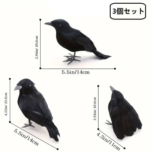 DIFEIUKI ハロウィン カラス 3個セット 模擬カラス 置物 生き生き 本物そっくり 鳥よけグッズ リアル羽毛カラス 窓飾り 学園祭 お化け 店舗 屋敷仮装パーティー コスチューム用 小物 リアル 舞台道具 人工鳥 | paghag