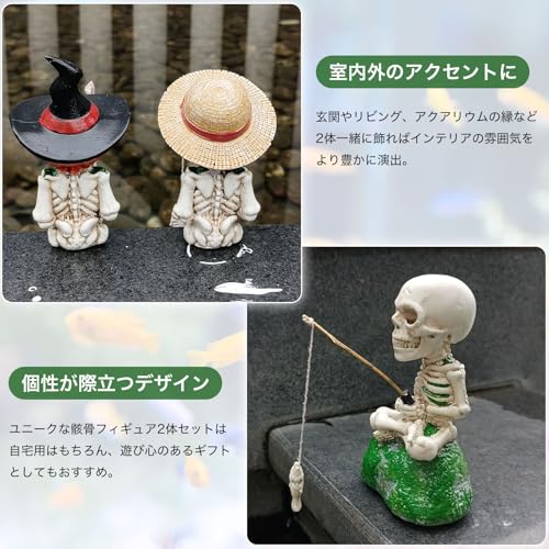 【個性が際立つデザインで、ギフトにもぴったり】 ユニークな骸骨フィギュア2体セットは、自宅用はもちろん、遊び心のあるギフトとしてもおすすめ。 お部屋のアクセントやアクアリウムの飾りとして、ユーモアと癒しを届けるオーナメントです。
