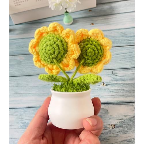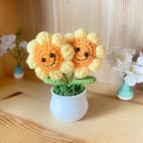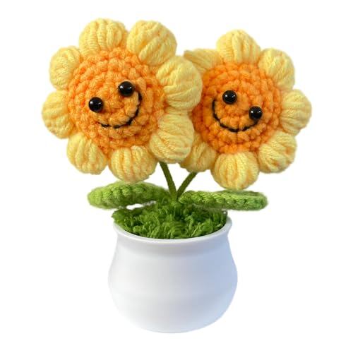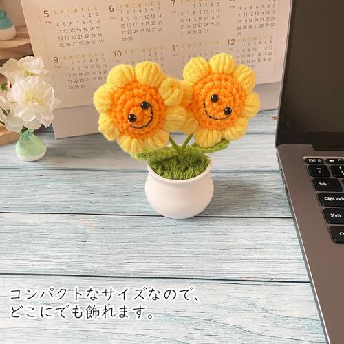 笑顔のひまわり:毛糸で精巧に作られており、とてもかわいいです。茎はさまざまな角度に曲げることができます
