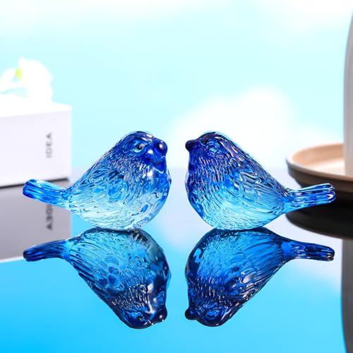 精巧なクリスタルと工芸品 - この2羽の青いクリスタルの鳥は、高品質のクリスタルから手作りされています。一つ一つ丁寧に選別され、職人によって研磨されているため、不純物や歪みがありません。クリスタルの鳥の表面には線が刻まれており、太陽の光を受けてキラキラと輝きます。サイズ:7×4.5cm(2.75×1.77インチ)