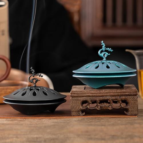 お香立て 線香皿 仏壇用 渦巻き線香 台 合金製 香炉 線香立て おしゃれ 蓋つき 和風 渦巻き専用 香皿 薫香炉 下敷き網 仏具 家庭用 茶道 書斎 瞑想 ヨガ お部屋 インテリア 置物 | paghag