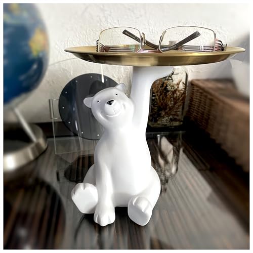 【癒しと実用性を兼ね備えた北欧風シロクマトレイ】 シロクマの可愛らしいフォルムと上質な仕上がりが魅力のジュエリートレイ。デスクやドレッサーの限られたスペースでも効率的に小物を収納できます。白い陶器ボディとゴールドのトレイ部分が絶妙にマッチし、インスタ映えするおしゃれな雰囲気を演出。散らかりがちな日用品をすっきりと整理できるだけでなく、見せる収納としても活躍する実用的なアイテムです。シロクマがお座りしてトレイを支える姿は、思わず笑顔になる癒し効果も。
