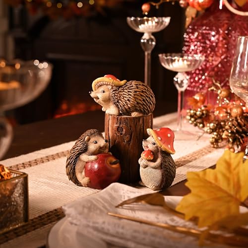 Valery Madelyn 秋の飾り 季節の飾り かわいい ハリネズミ 3匹セット置物 オブジェ インテリア 屋外装飾 彫像 アウトドア 秋の庭 感謝祭 秋の装飾 誕生日プレゼント 樹脂製