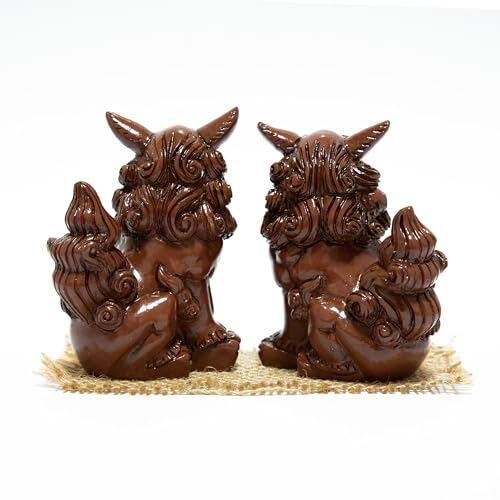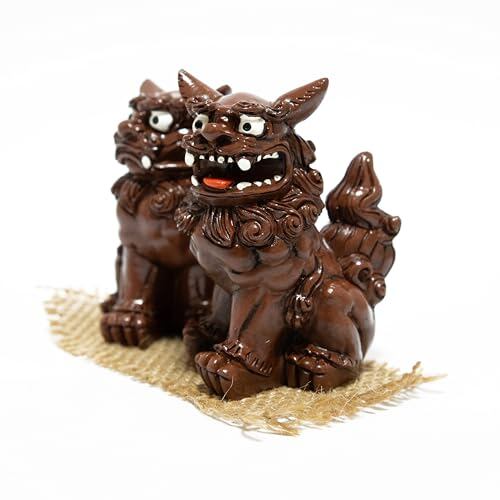 シーサー 置物 玄関 万来 獅子 茶色 ペア 深い茶色 11cm 沖縄 伝統 幸運 家の守り インテリア 飾り プレゼント 安定感