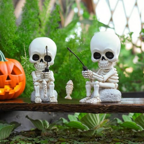 [COSSA] ハロウィン飾り スカル置物 釣りのスカル ミニチュア 髑髏 骸骨 ガーデンオーナ スカルオーナメント デコレーション ゴシック 怖い インテリア雑貨 可愛い 面白い小道具 装飾品 水族館 (黒) | paghag
