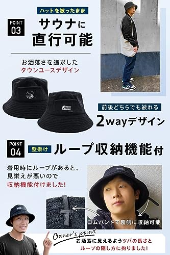[Someie] EXTREME SAUNA サウナハット 街中でも着れる メンズ レディース ブラック 【サウナオーナー監修】 バケットハット タオル生地 ループ付