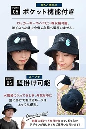 ✅【ループ付】テントサウナでの使用を考慮して、壁のフックに引っ掛けられるループをハットのサイドに設置。帽子をかぶっているときは裏面のゴムバンドに収納でき、デザイン性を損ないません。