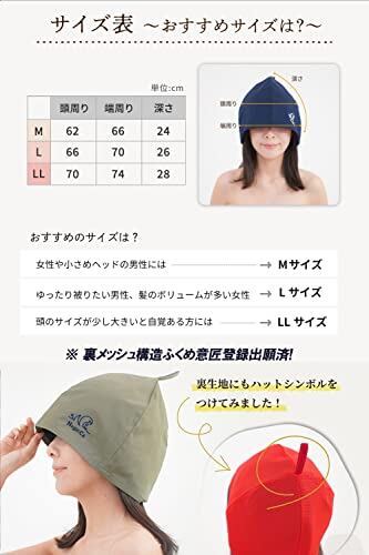 【素材】表地 コットンツイル 100% (裏地ポリエステル100%) 【選べる3サイズ(約㎝)】 ★Mサイズ 頭囲62 深さ24 ★Lサイズ 頭囲66 深さ26 ★LLサイズ 頭囲70 深さ28 【効能】 髪、頭皮のダメージケア、乾燥予防、のぼせ防止に