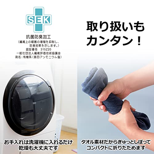 【コンパクトで衛生的】抗菌&防臭加工をしてあるのでいつでも快適にご使用いただけます。素材がタオルだからぎゅっと簡単に絞れて、洗濯機でも洗えます。※)色落ちの可能性がありますので、他の洗濯ものとの洗濯はおさけください。